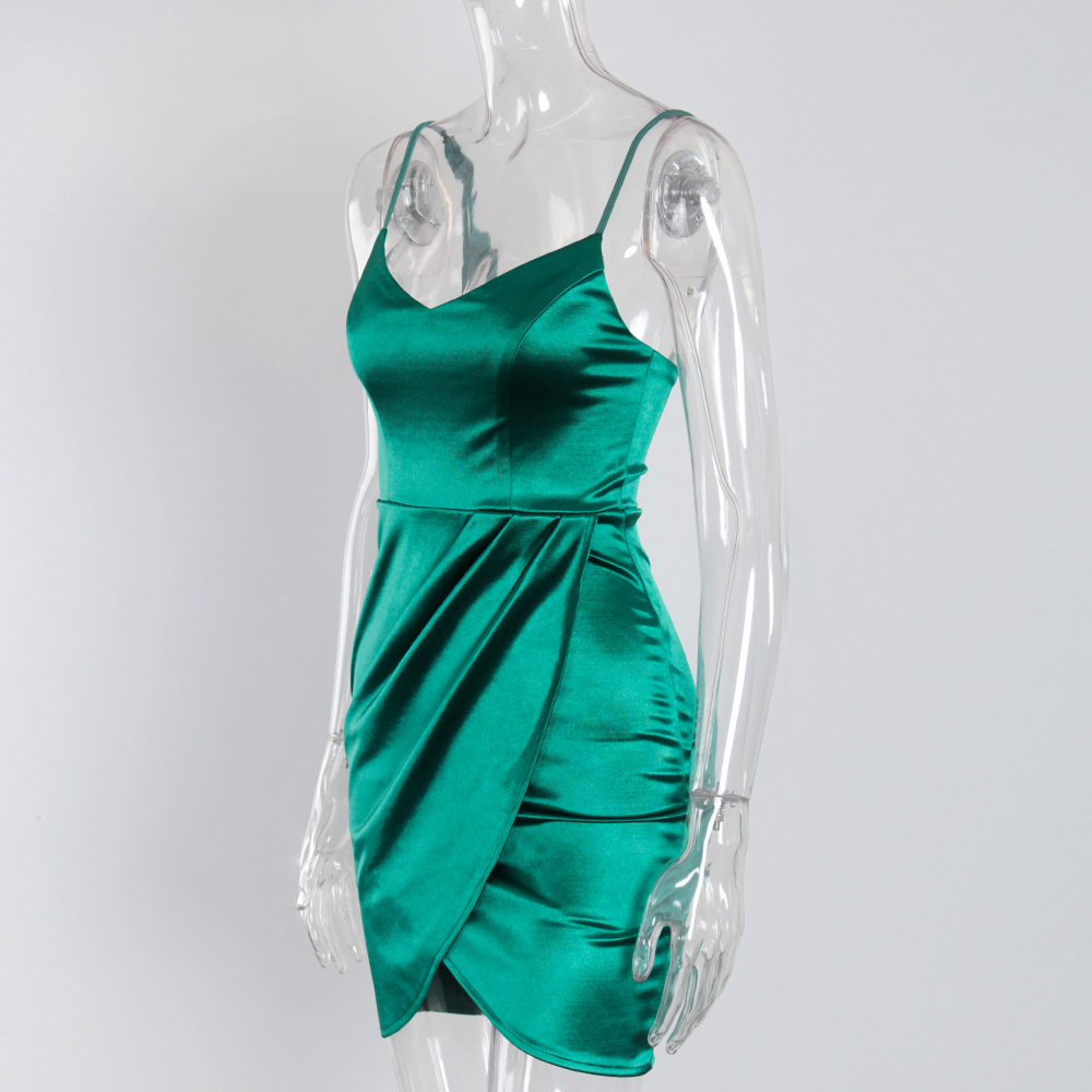Fleepmart V Neck Sleeveless Short Satin Mini Dress Bodycon Stretch Backless Ruched Split Spaghetti Straps Party Clubbing Vestidos