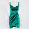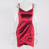 Fleepmart V Neck Sleeveless Short Satin Mini Dress Bodycon Stretch Backless Ruched Split Spaghetti Straps Party Clubbing Vestidos