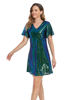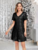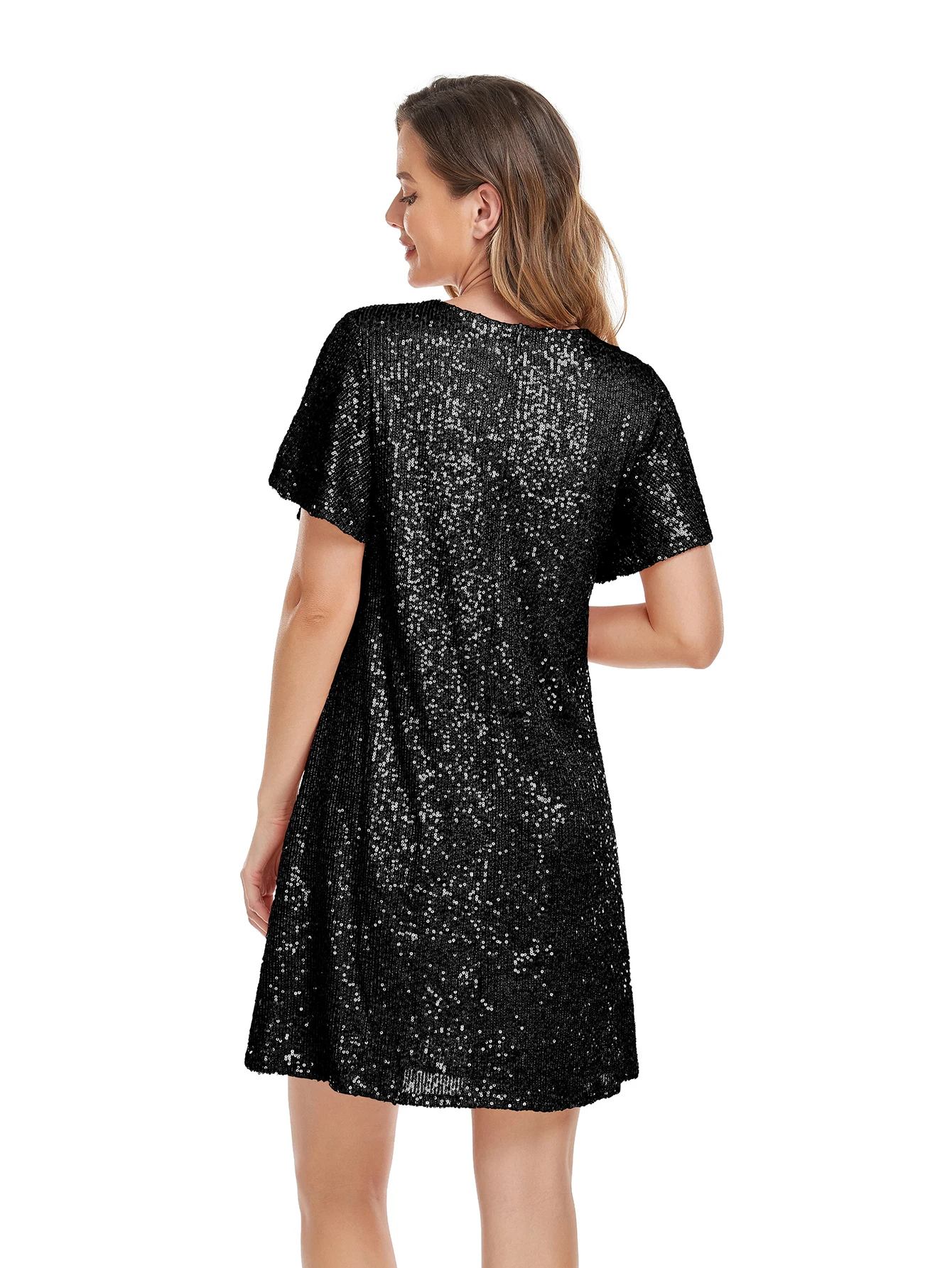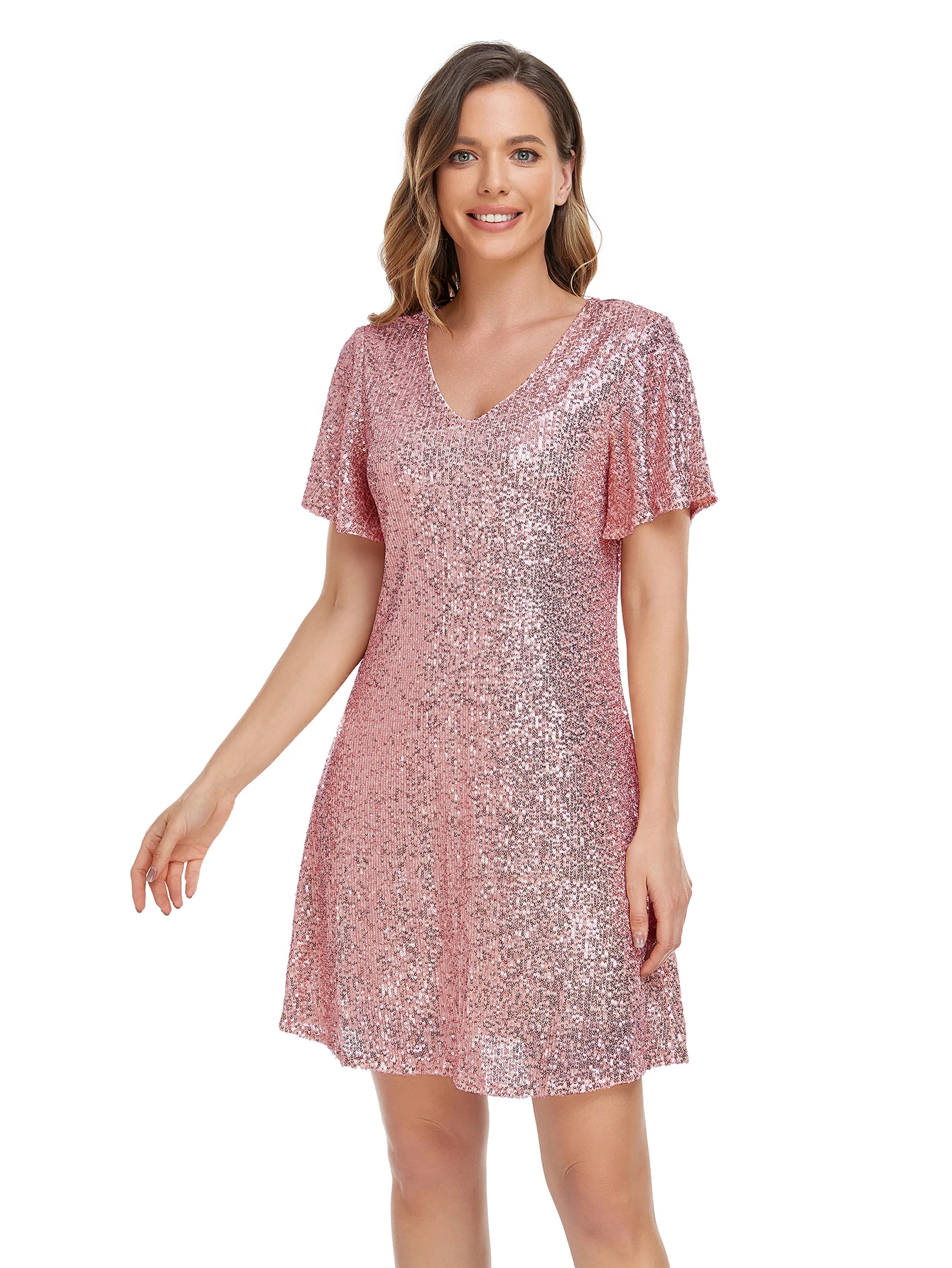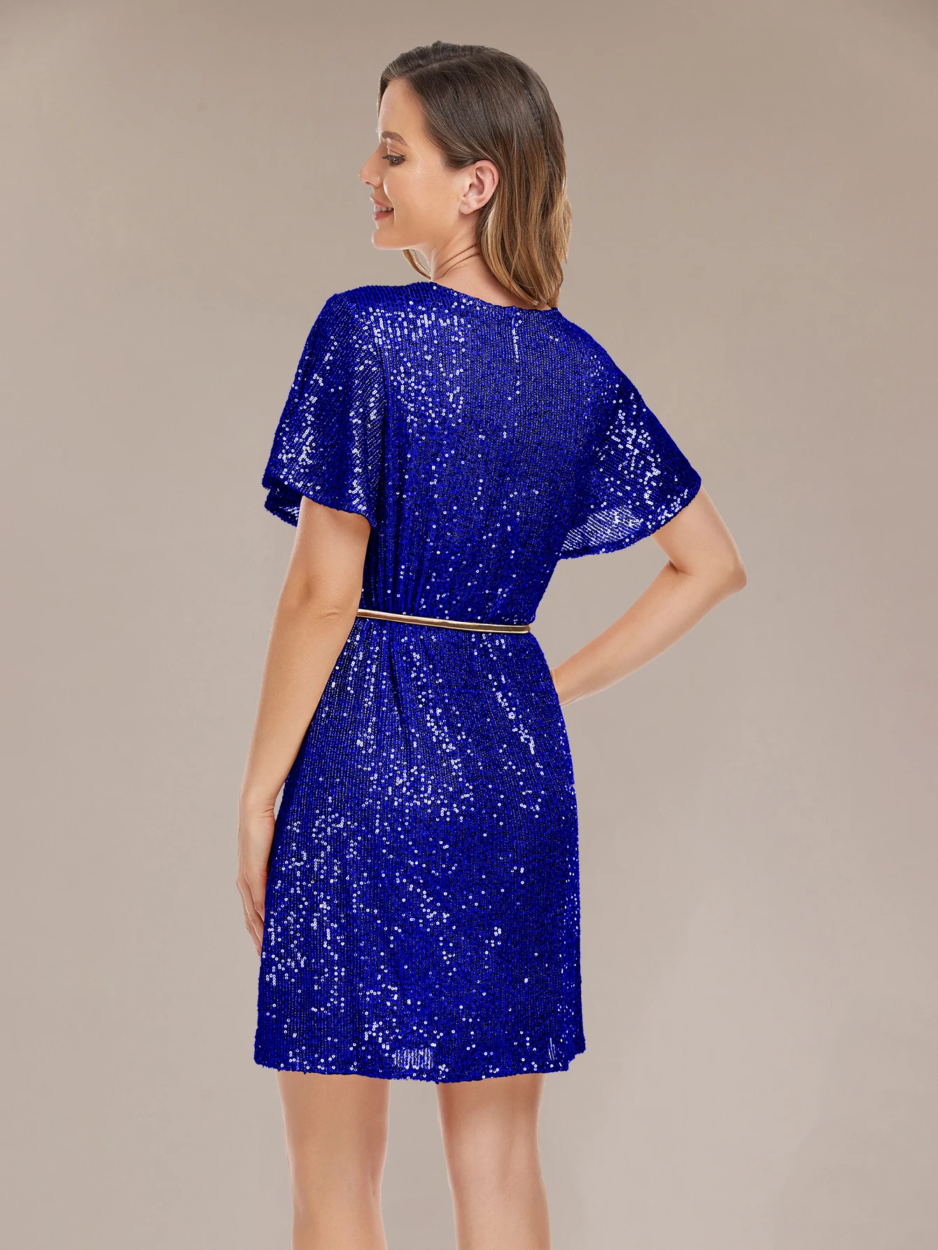 Fleepmart V-neck Sleeveless Short Sleeve Prom Dress Women’s Mini Sequins Party Dress Shinning A-line Sexy Robe De Soiree