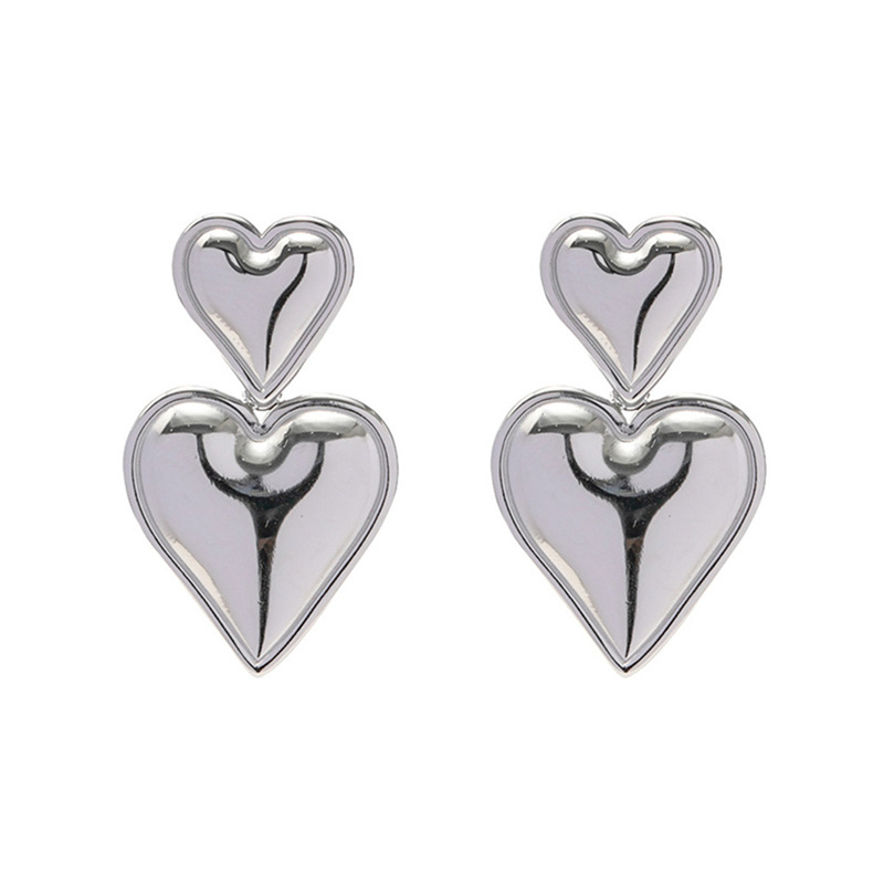Fleepmart Vintage 18K Gold Plated Stainless Steel Double Heart Shaped Drop Earrings Women Jewelry Gift
