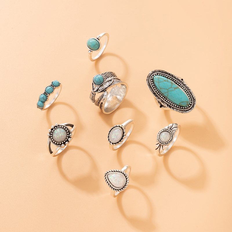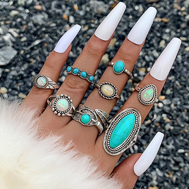 Fleepmart Vintage Antique Green Stone Joint Ring Set for Women Men Clear Crystal Party Bohemian Jewelry Accessories Anillo