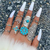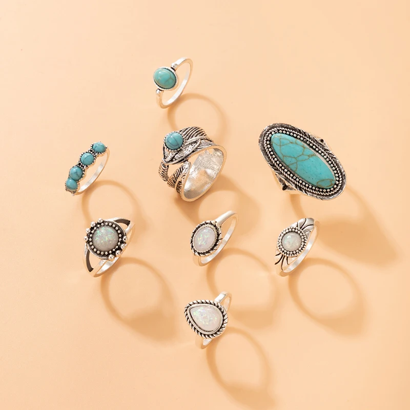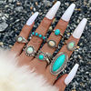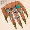 Fleepmart Vintage Antique Green Stone Joint Ring Set for Women Men Clear Crystal Party Bohemian Jewelry Accessories Anillo