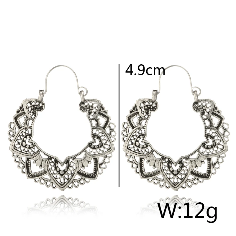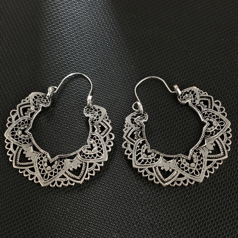 Fleepmart Vintage Antique Silver Color Carving Drop Earrings for Women Ethnic Alloy Piercing Dangle Earrings Jewelry pendient
