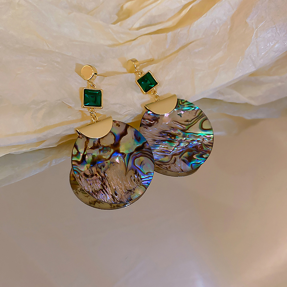 fleepmart Vintage Big Long Round Abalone Shell Drop Earrings for Women Green Crystal Geometric Pendant Earring Unusual Jewelry