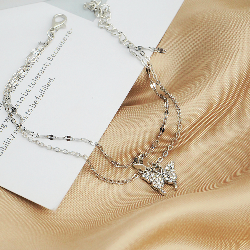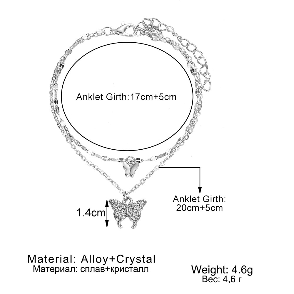 Fleepmart Vintage Crystal Butterfly Women's Anklet Bohemia Silver Plated Beach Double Chain Ankle Anklet 2022 Summer Leg Jewelry