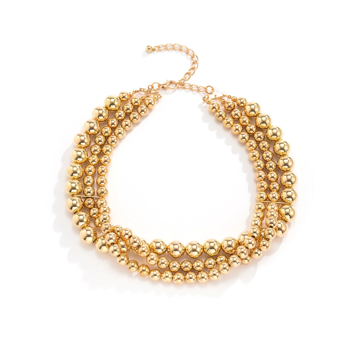 fleepmart Vintage Exaggerated Plastic Big Ball Choker Necklace for Women Multi Layered Chunky Thick Clavicle Necklaces Jewelry