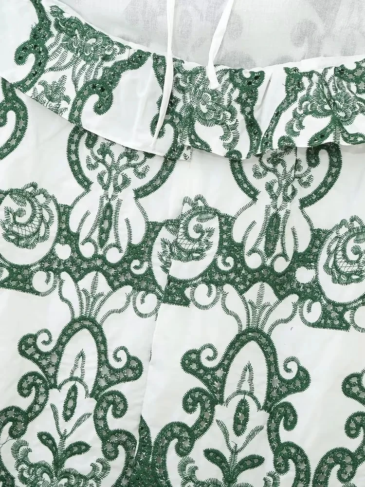 Fleepmart Vintage Flower Embroidery Summer Maxi Dress Women Bakless Tie Up Ruffles Long Beach Vestidos Sexy Tank Party Dresses Sundress