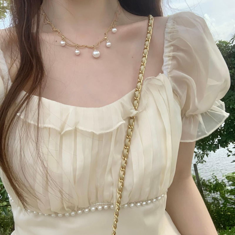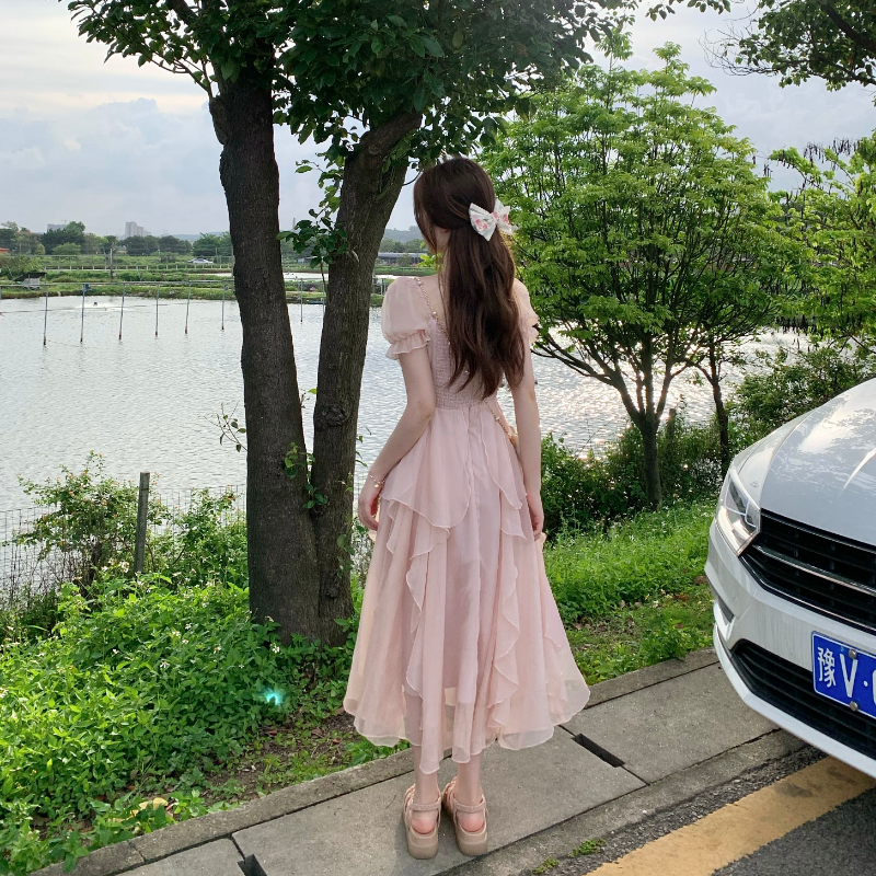 Fleepmart Vintage French Sweet Fairy Lace Beading Chiffon Dress Evening Midi Dresses For Women Elegant Party Casual Beach Summer