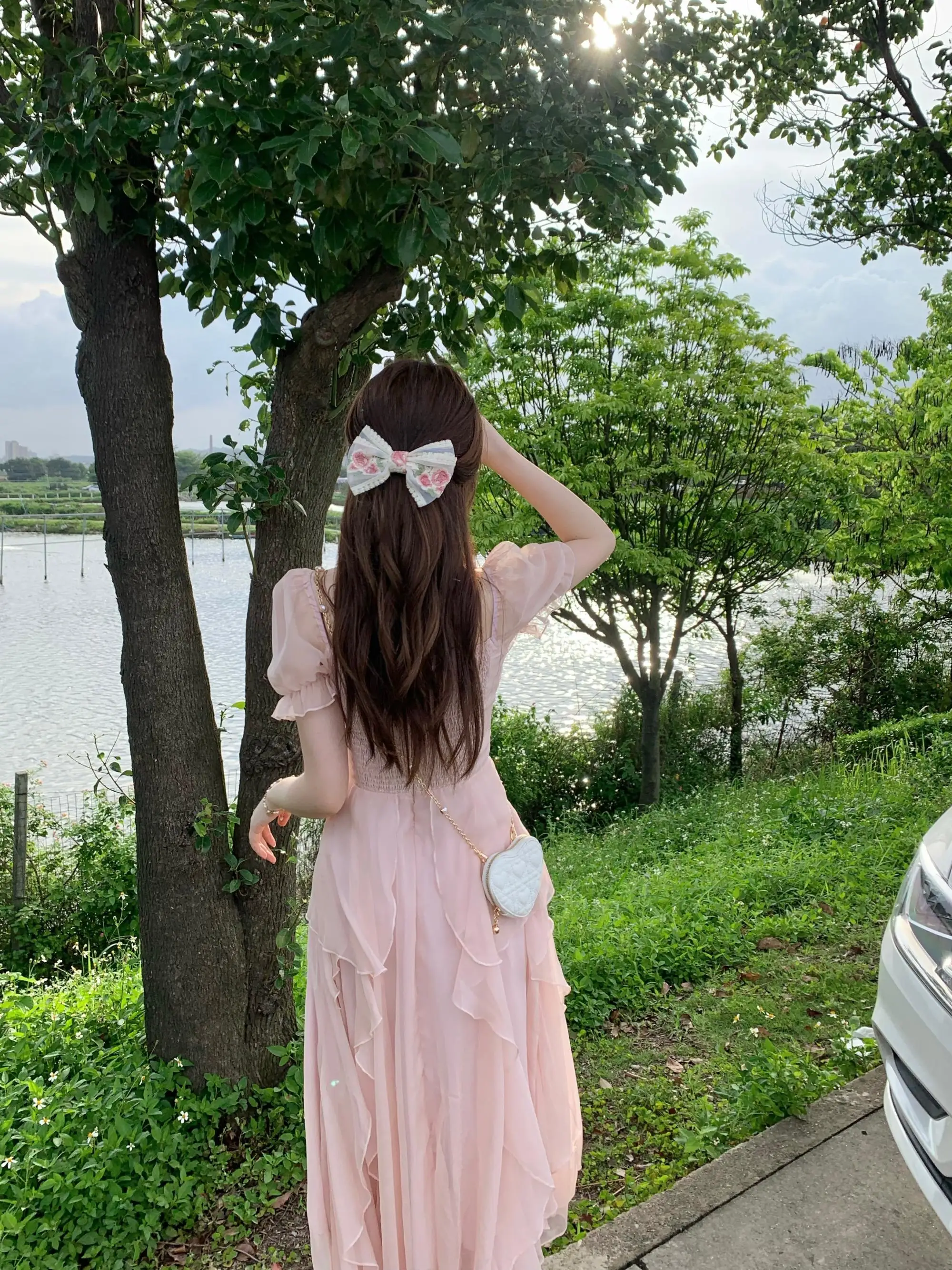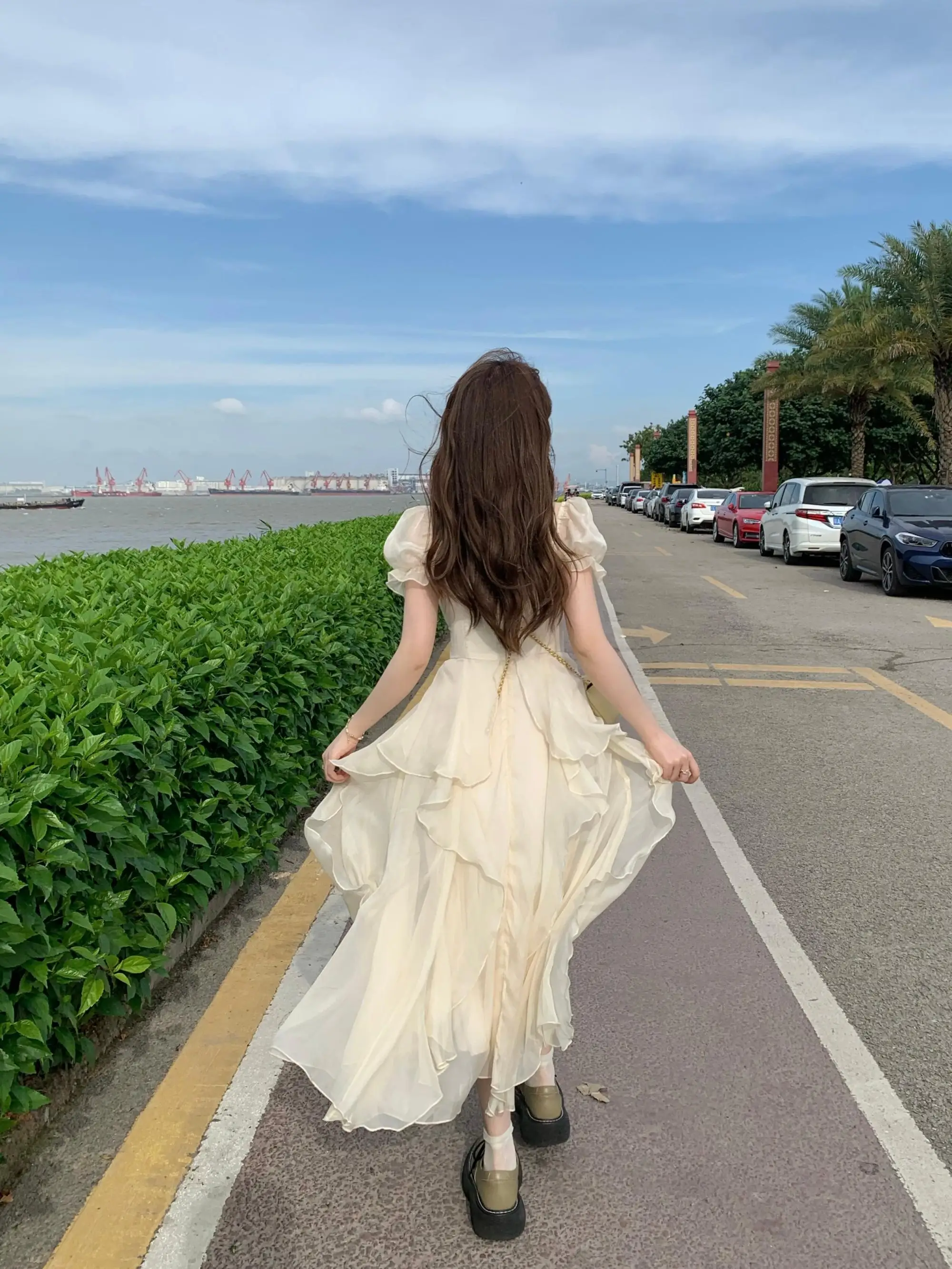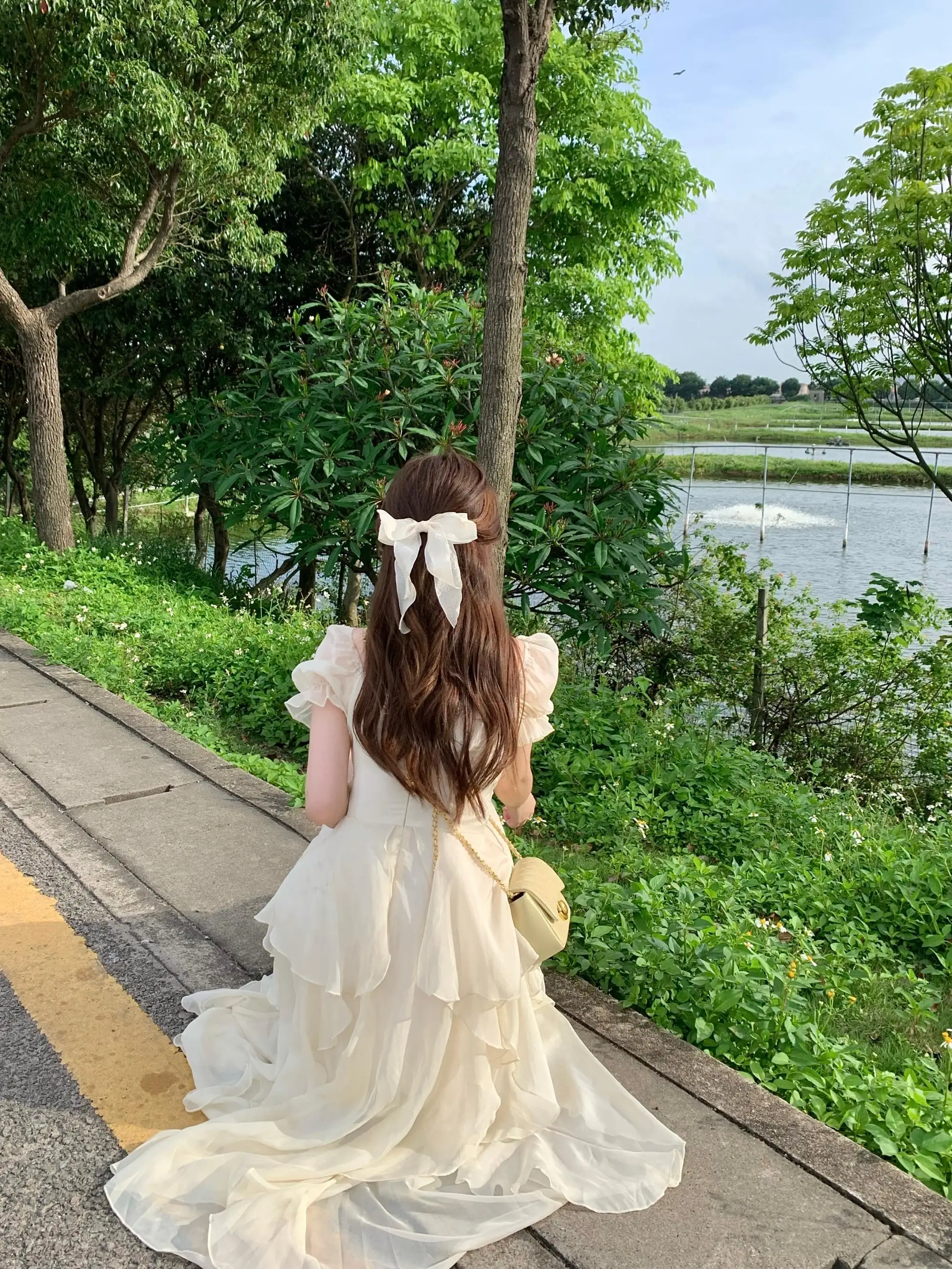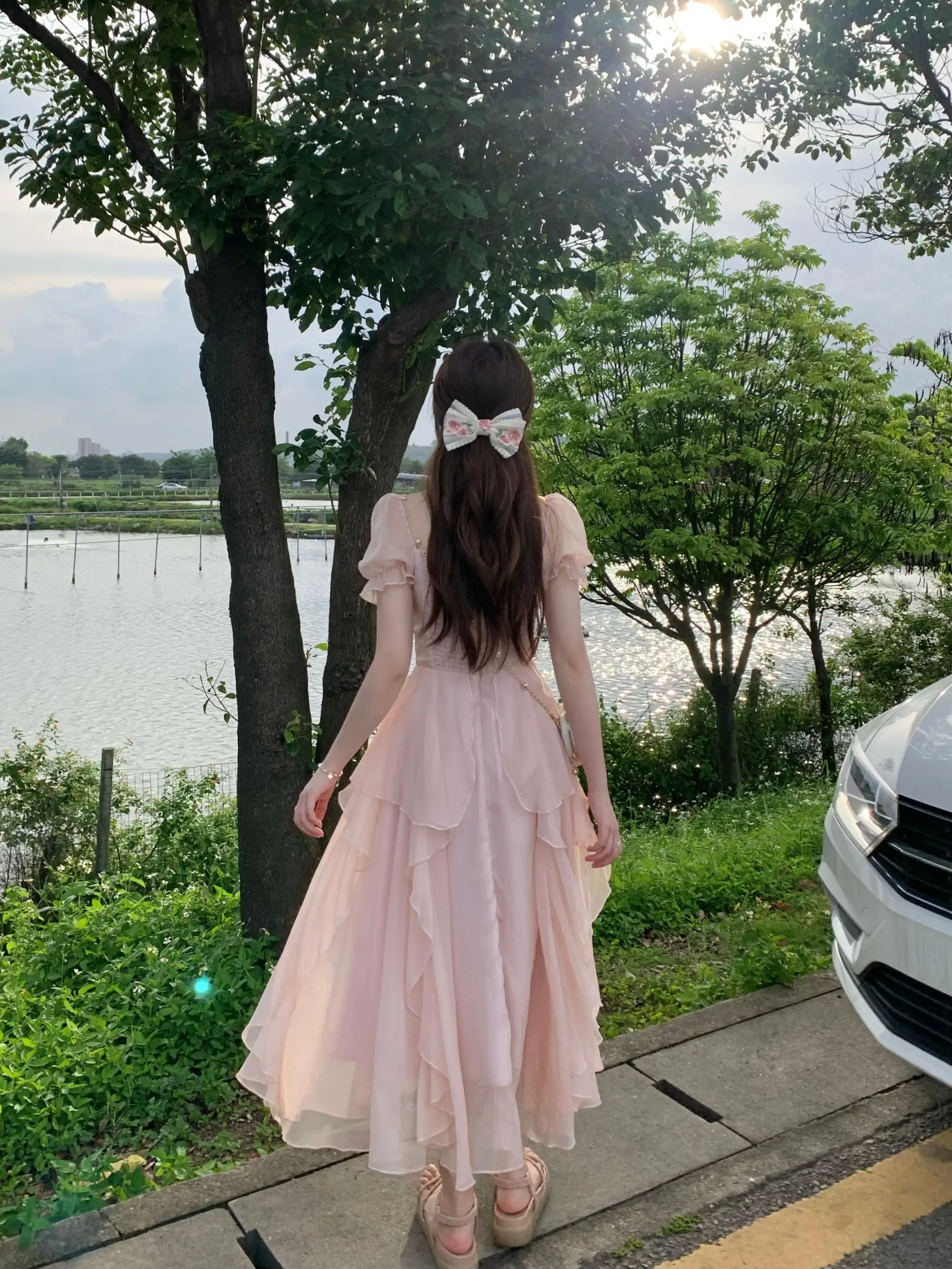 Fleepmart Vintage French Sweet Fairy Lace Beading Chiffon Dress Evening Midi Dresses For Women Elegant Party Casual Beach Summer