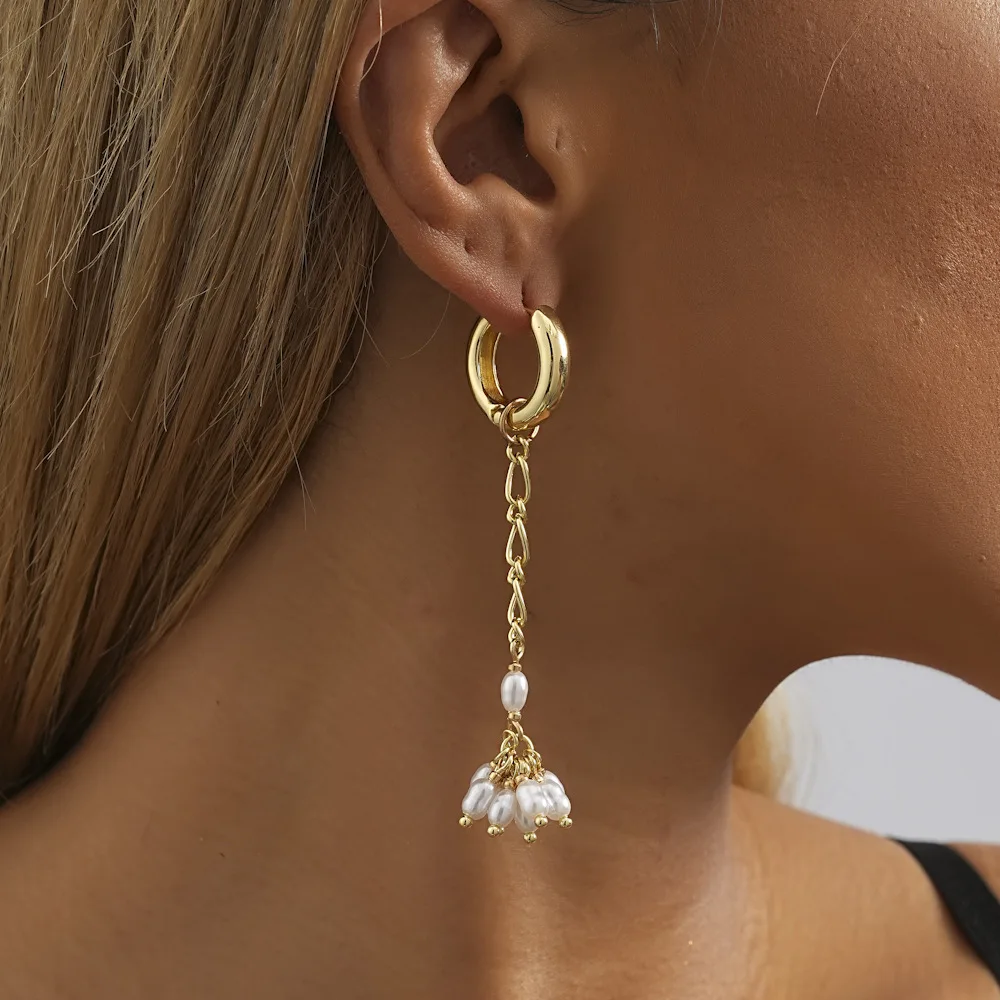 Fleepmart Vintage Gold Color Long Link Chain Hoop Earrings For Women Fashion Imitation Pearl Tassel Pendant Earrings Christmas JewelryFleepmart Vintage Gold Color Long Link Chain Hoop Earrings For Women Fashion Imitation Pearl Tassel Pendant Earrings Christmas Jewelry