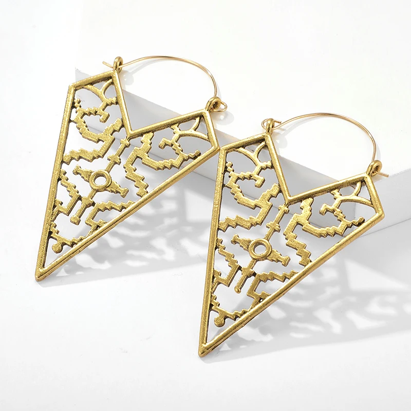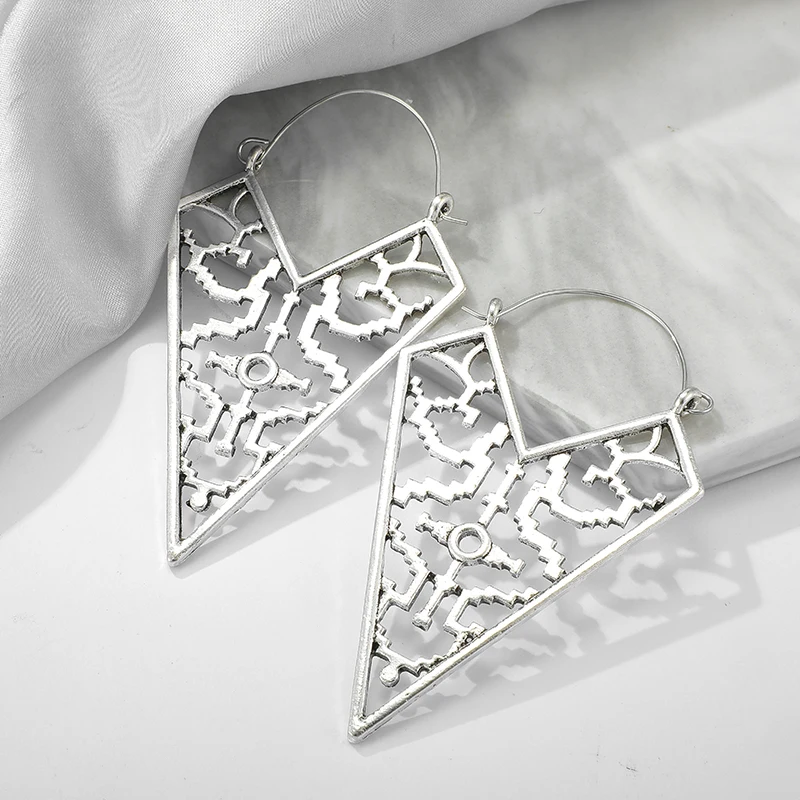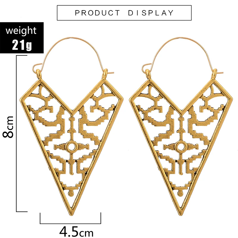 Fleepmart Vintage Gold Silver Color Drop Earring for Women Hollow Triangle Geometric Dangle Drop India Party Jewelry