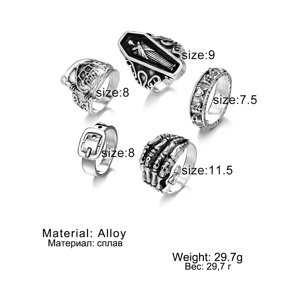 Fleepmart Vintage Gothic Ring for Women Men Creative Coffin Skeleton Hand Belt Silver Color Metal Rings Set Fashion Jewelry Gifts