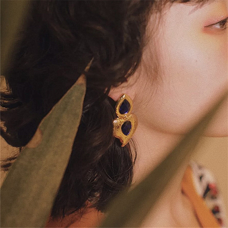 Fleepmart Vintage Green Double Rhinestone Pendant Drop Earrings For Women 2022 Bohemia Geometric Earring Party Jewelry Accessories Gift