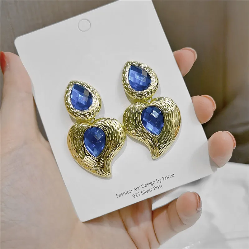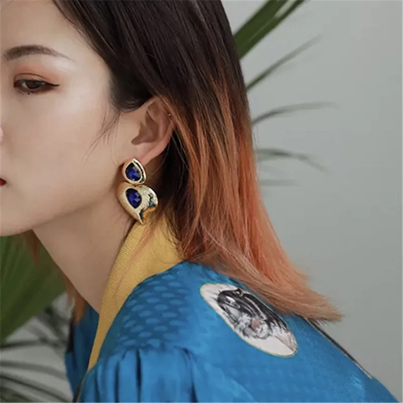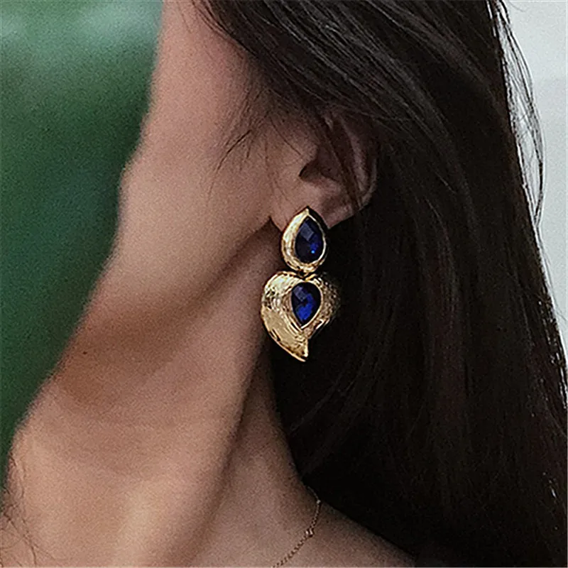 Fleepmart Vintage Green Double Rhinestone Pendant Drop Earrings For Women 2022 Bohemia Geometric Earring Party Jewelry Accessories Gift