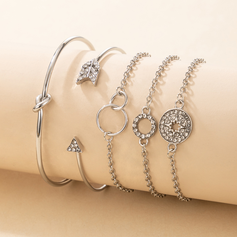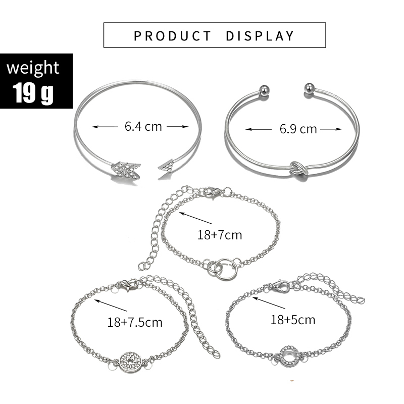 Fleepmart Vintage Hollow Star Tree Leaf Bracelet for Women Luxury Crystal Geometry Opening Bangle Set Party Jewelry 5pcs/sets