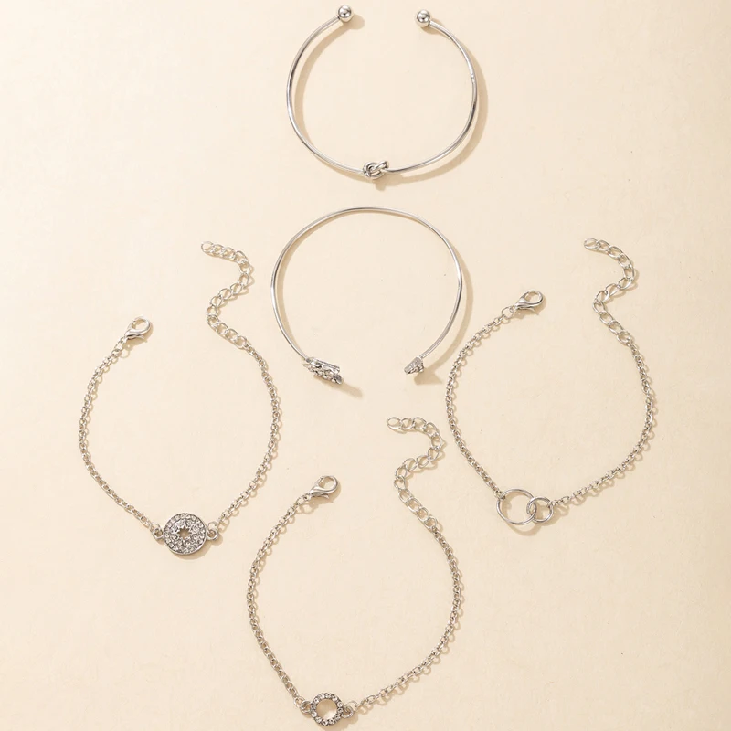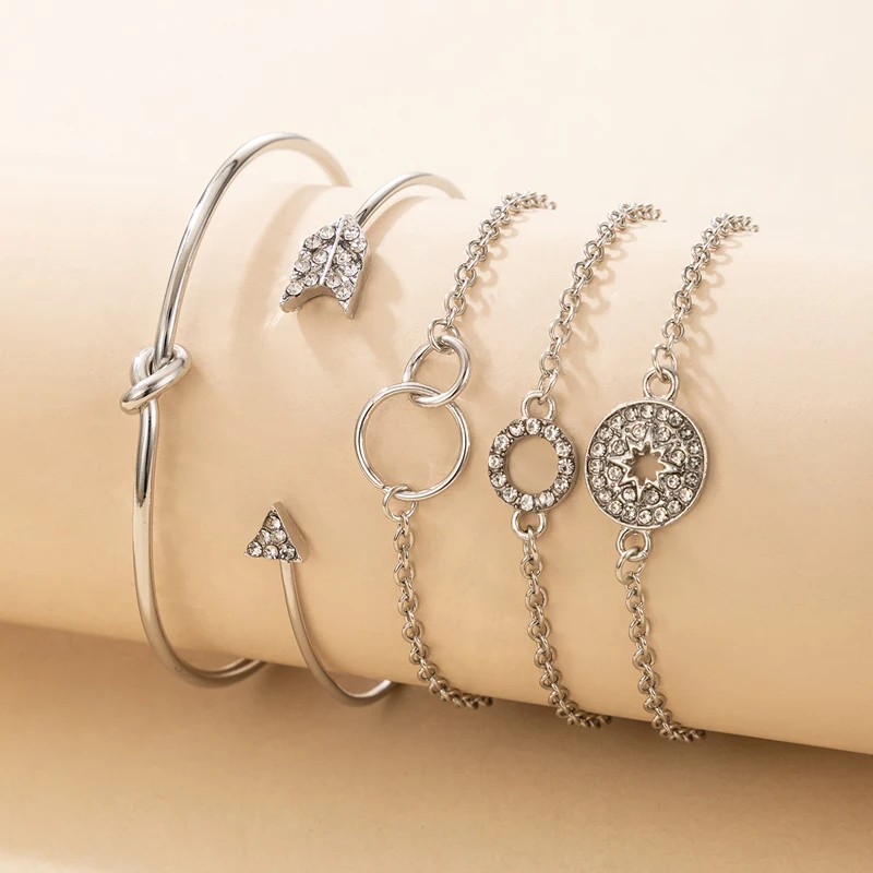 Fleepmart Vintage Hollow Star Tree Leaf Bracelet for Women Luxury Crystal Geometry Opening Bangle Set Party Jewelry 5pcs/sets