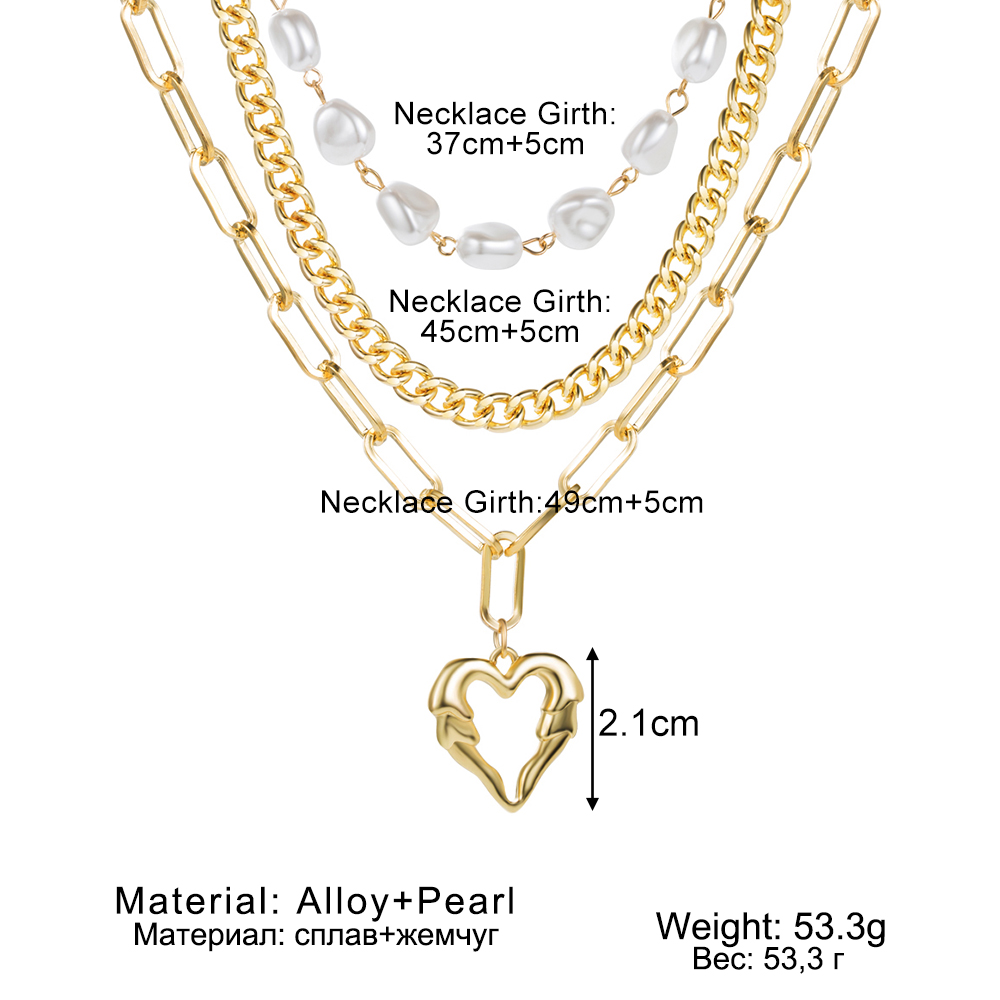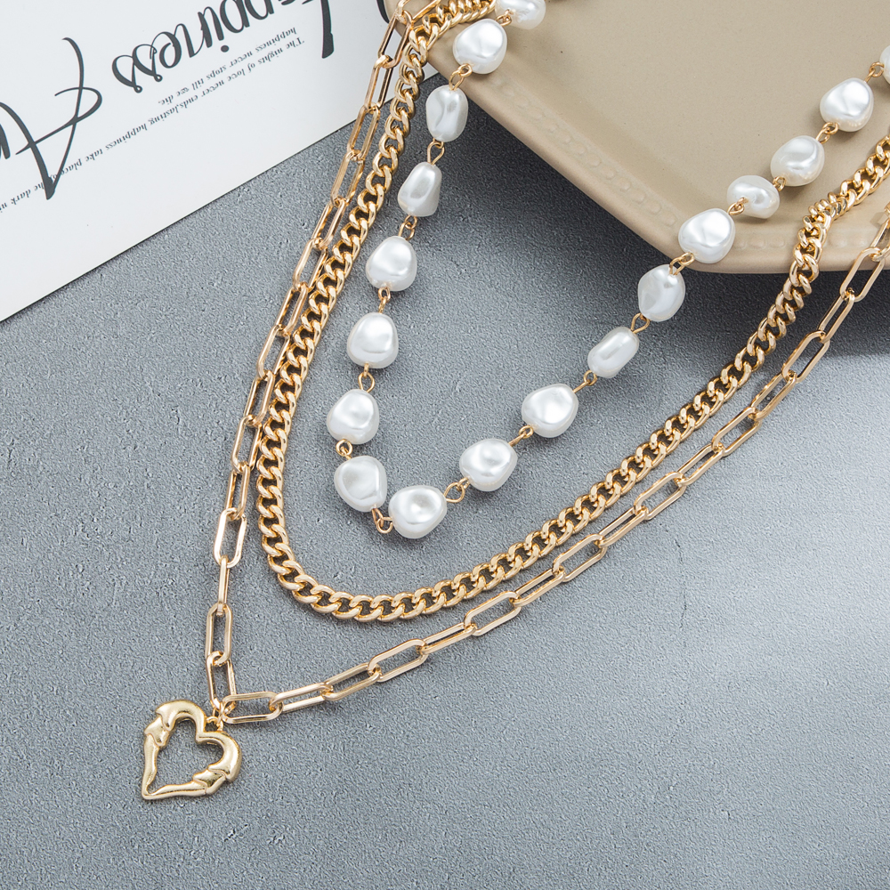 Fleepmart Vintage Irregular Pearl Heart Thick Chain Pendant Necklace for Women Multilayer Hollow Love Pendant Necklace Jewelry Party Gift