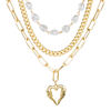 Fleepmart Vintage Irregular Pearl Heart Thick Chain Pendant Necklace for Women Multilayer Hollow Love Pendant Necklace Jewelry Party Gift