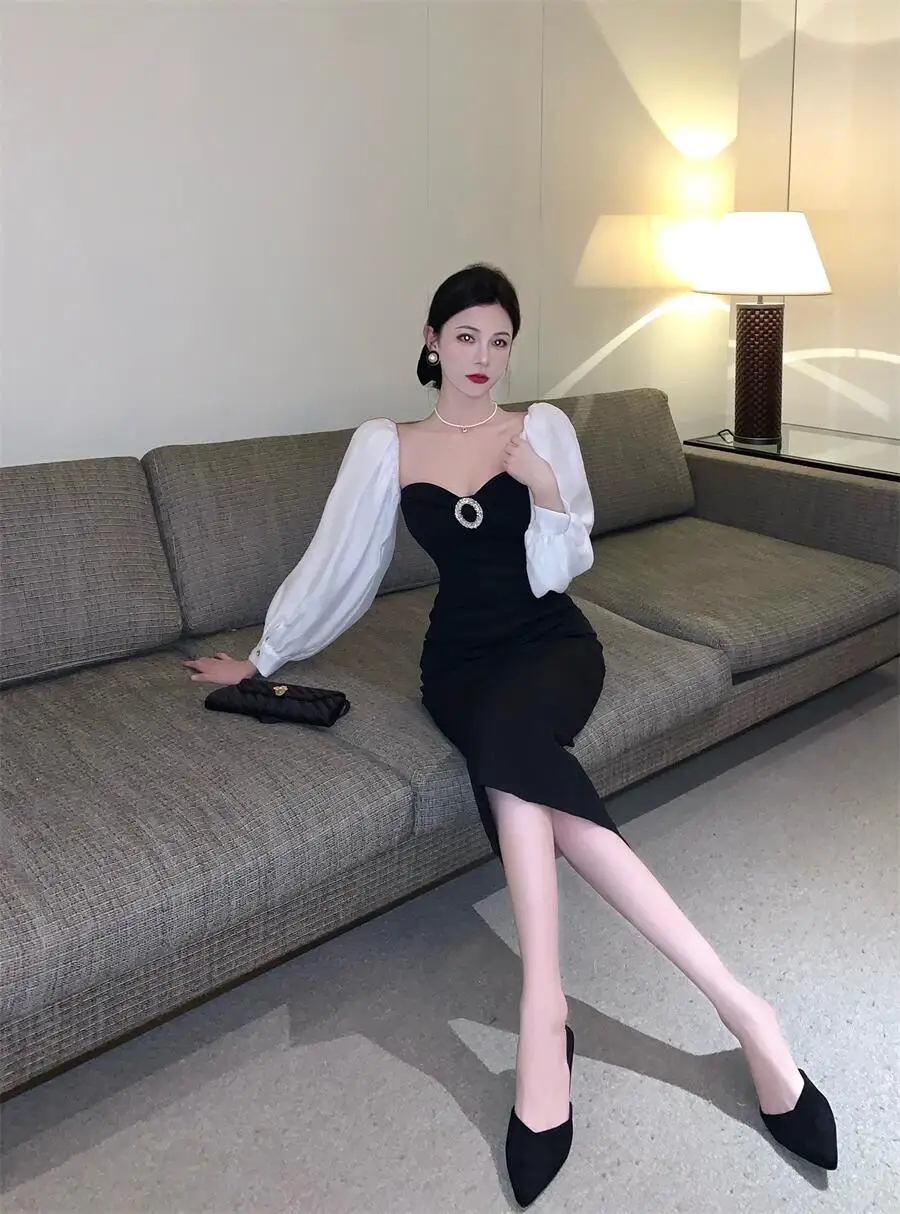 fleepmart Vintage Long Dress Women Sexy Backless Split Evening Party Dress Female Winter One Piece Y2K Bodycon Christmas Dress New