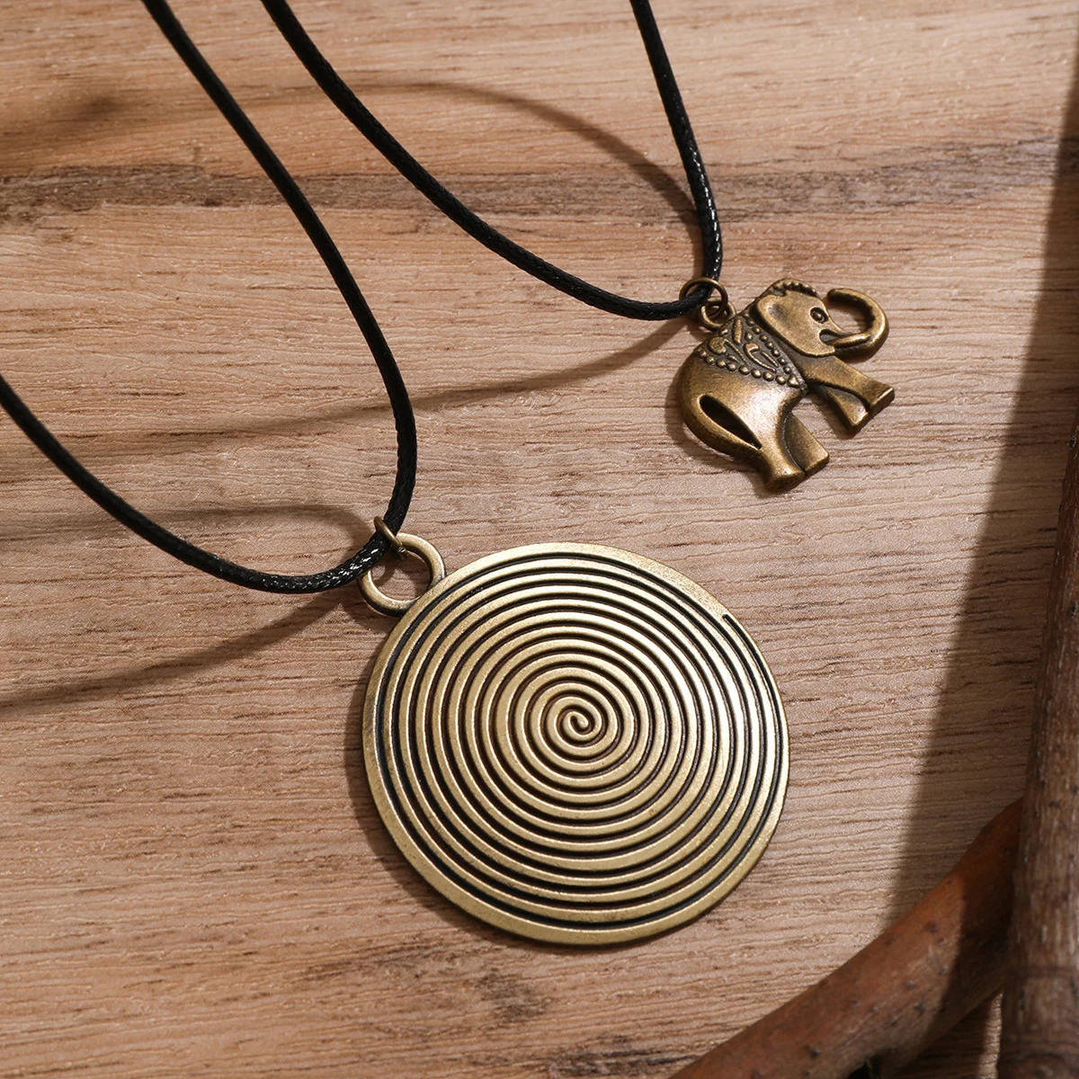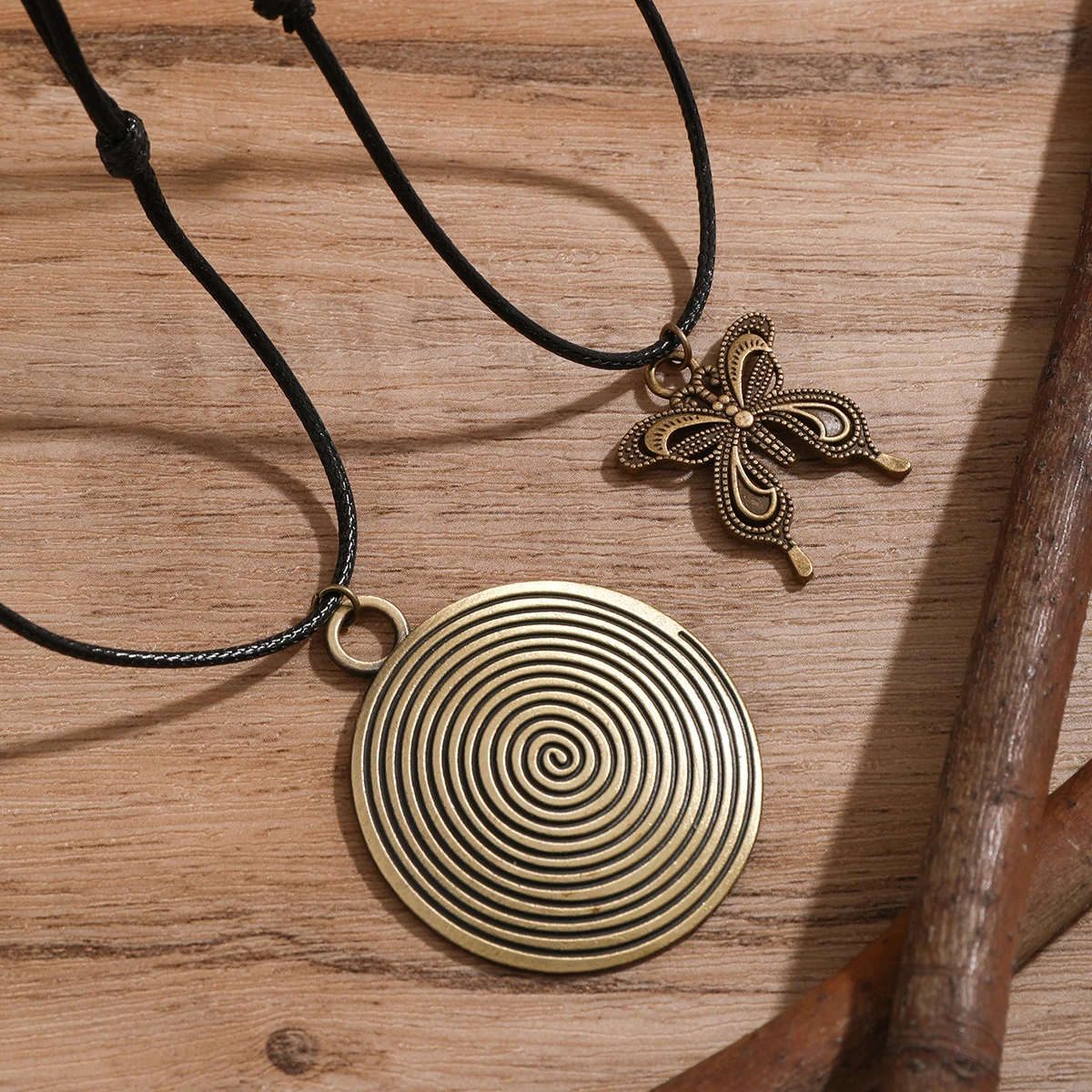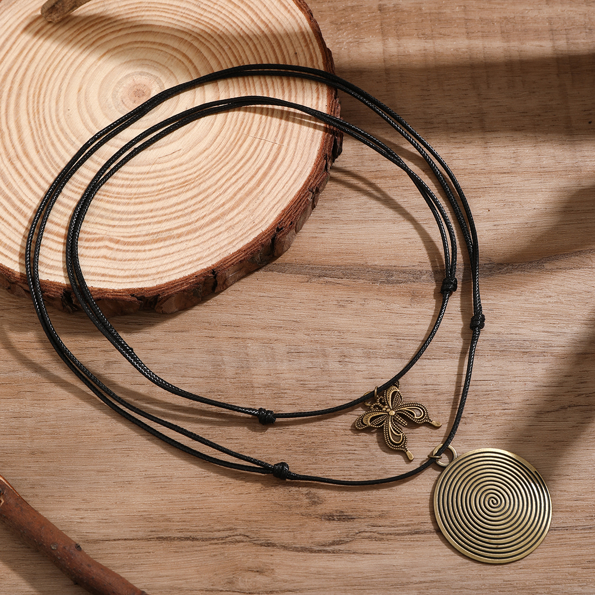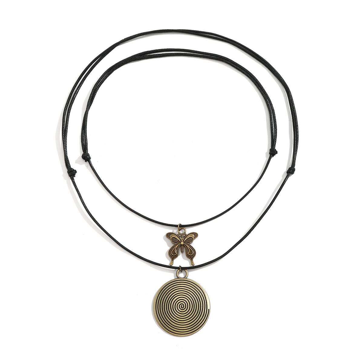 Fleepmart Vintage Metal Butterfly Elephant Pendant Necklace Gothic Adjustable Wax Rope Chain Choker Women Harajuku Beach Jewelry