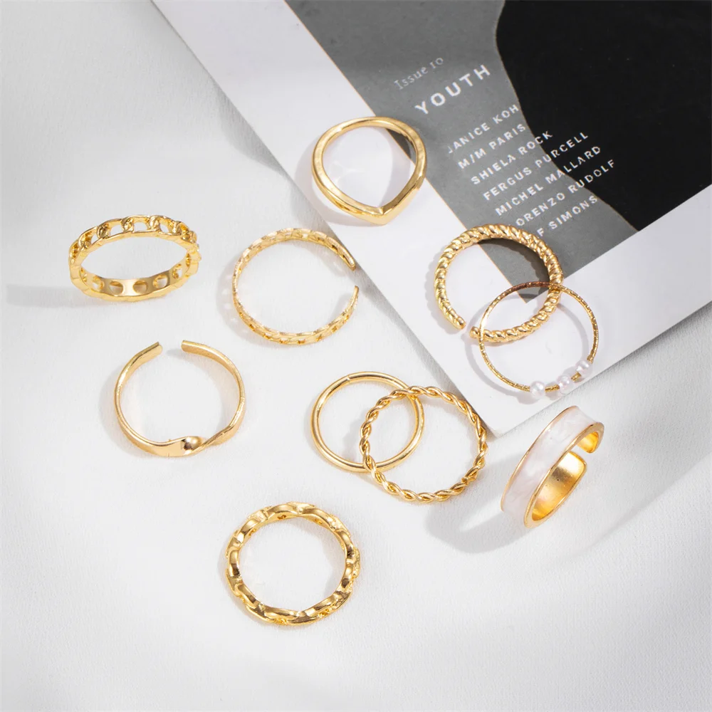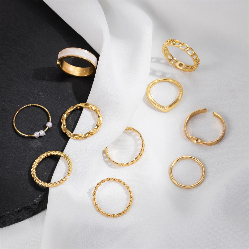 Классный набор колец. Можно комбинировать под разные образы. Размеры от 15 до 18. Некоторые не сплошные, имеют разрыв в стыке. Стильные и минималистичные. Покупкой довольна!