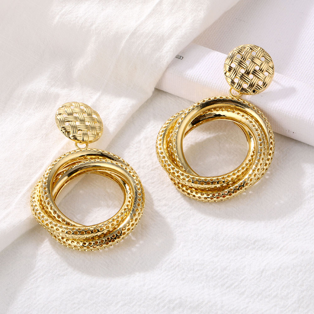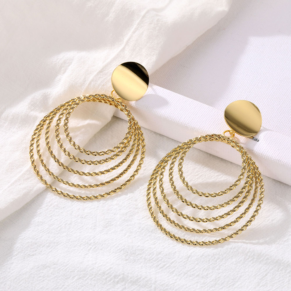 Fleepmart Vintage Metal Round Alloy Drop Earrings Statement Golden Hollow Circle Geometric Dangle Earrings Jewelry Gift