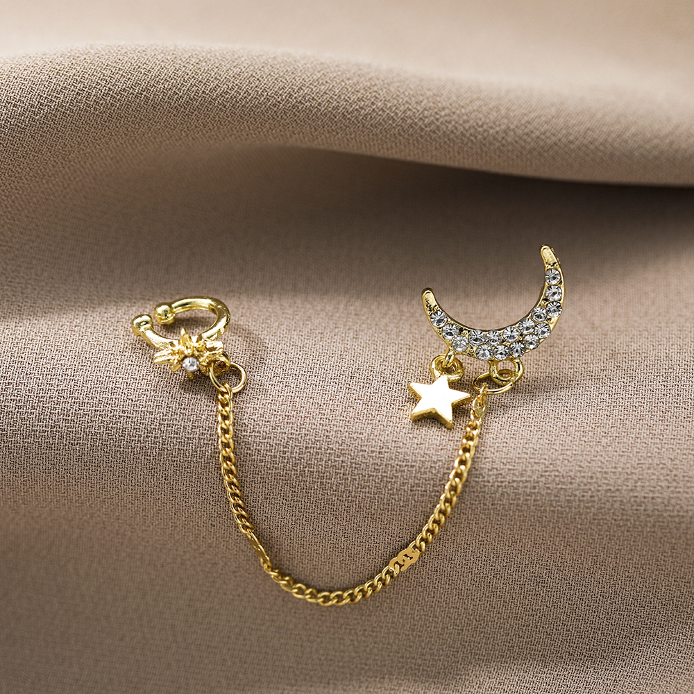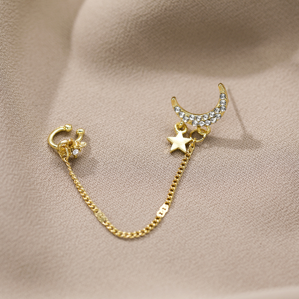 Fleepmart Vintage Moon Star Tassel Chain Drop Earrings for Women Bosnian Gold Crystal Star Ear Hook Ear Hook Earrings Fashion Jewelry Gift
