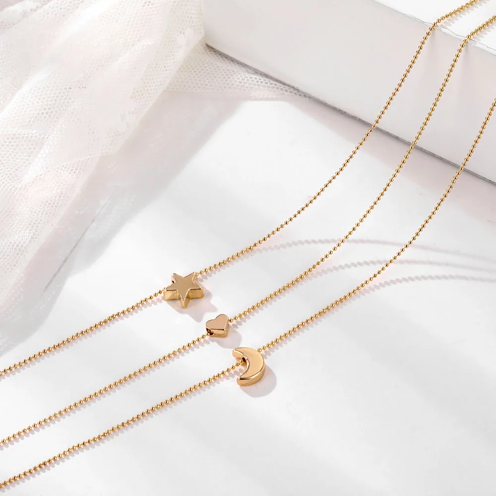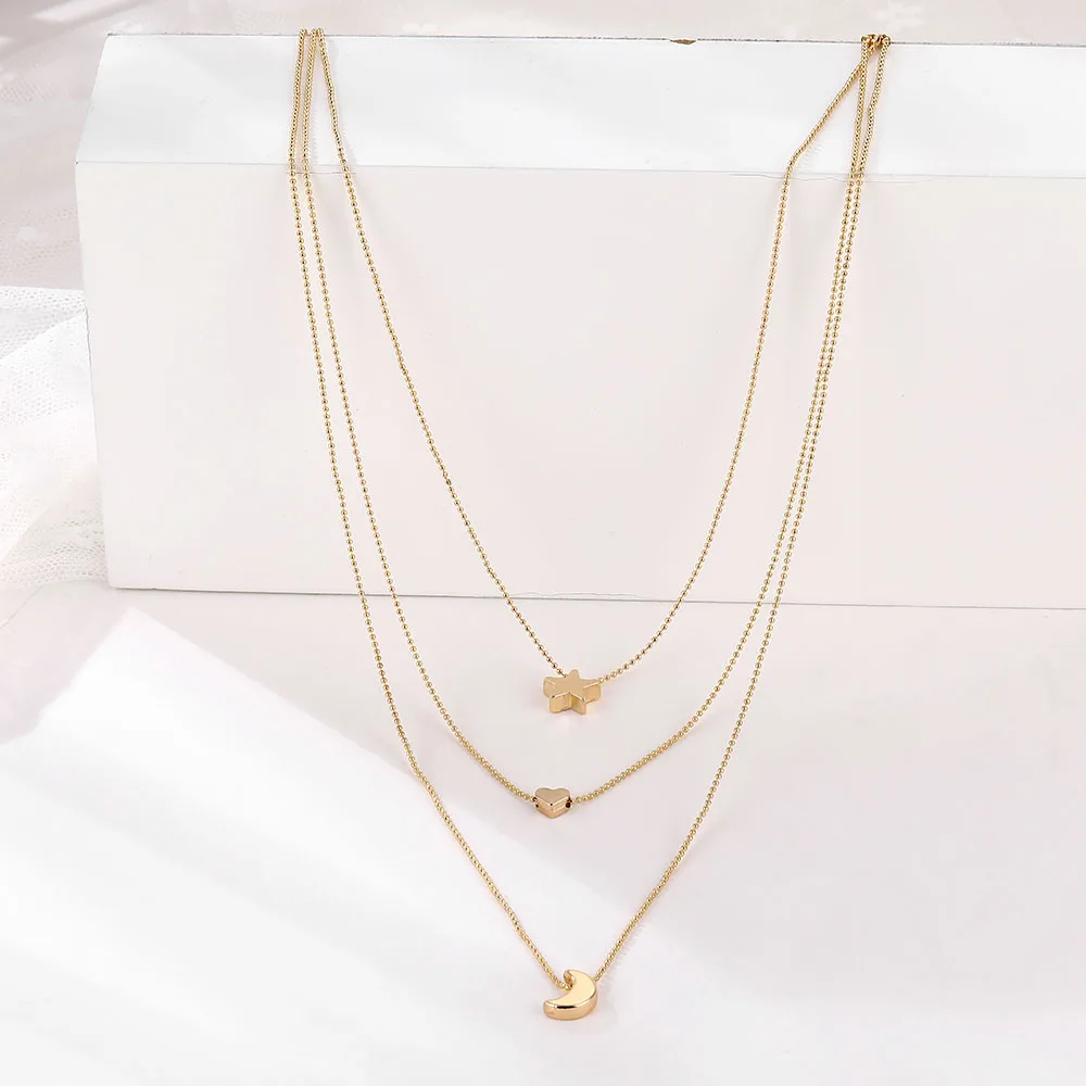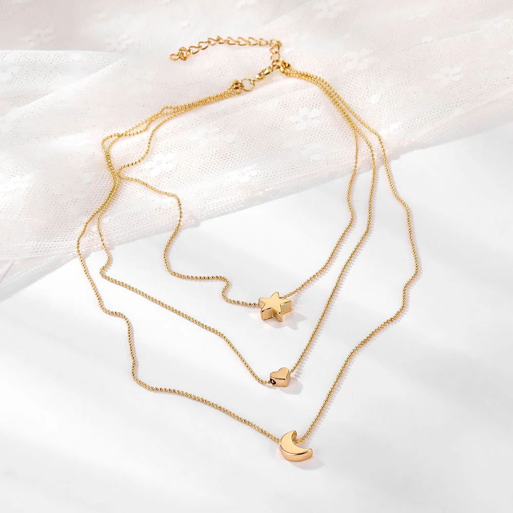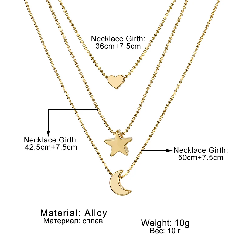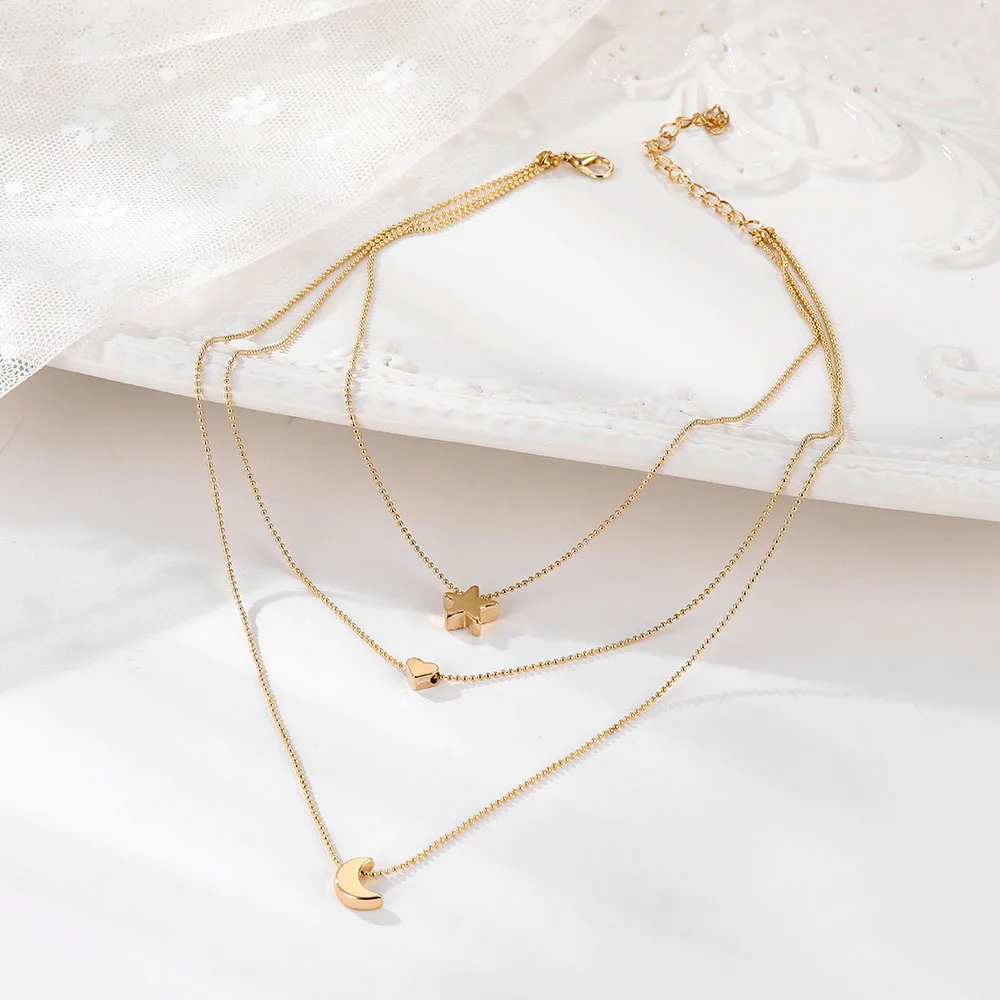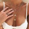 Fleepmart Vintage Multilayer Choker Necklaces For Women Gold Color Moon Star Horn Crescent Coin Crystal Pendant Necklace Jewelry 2022