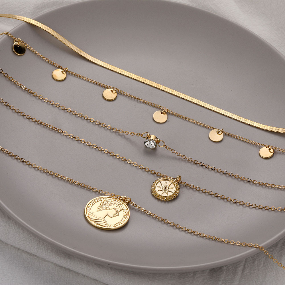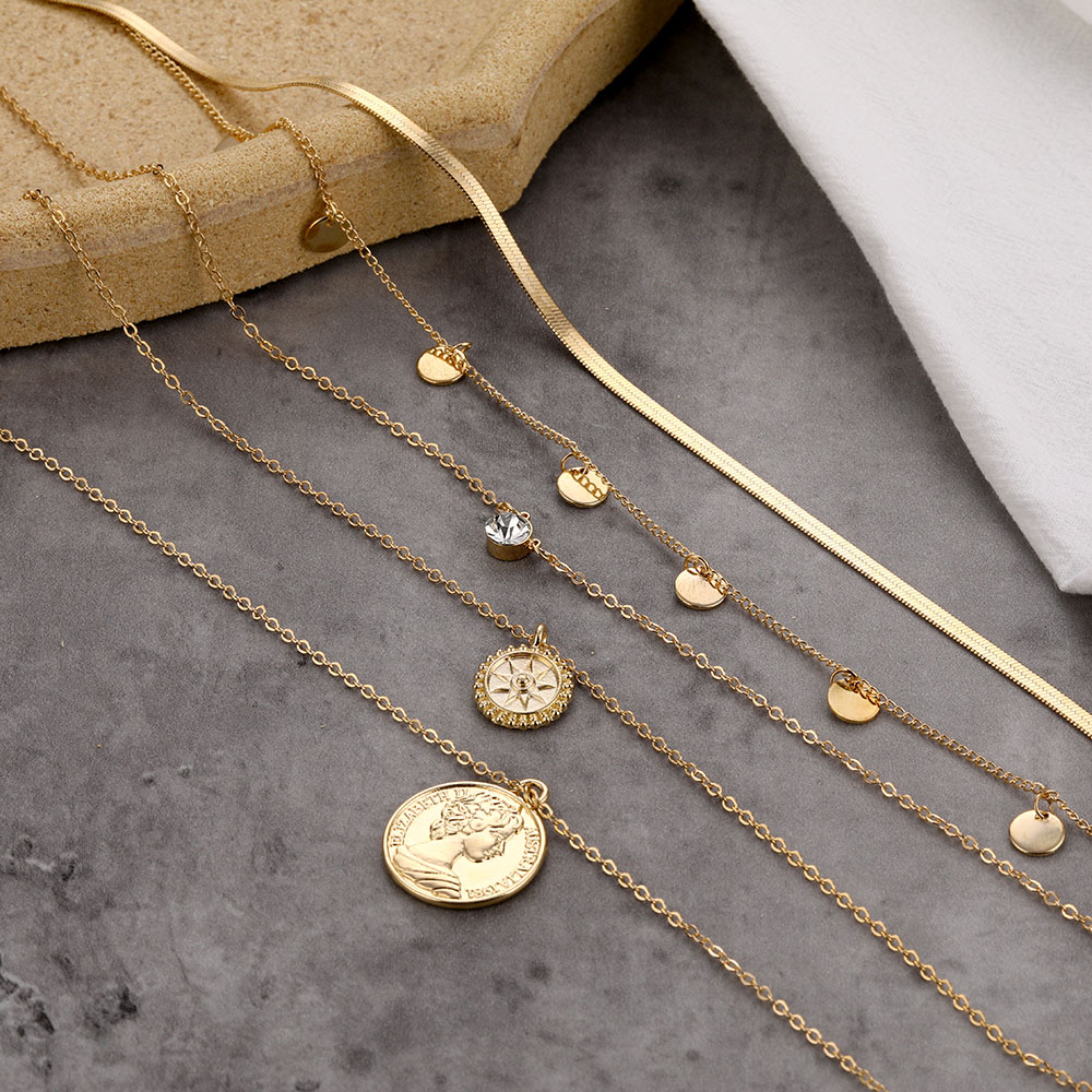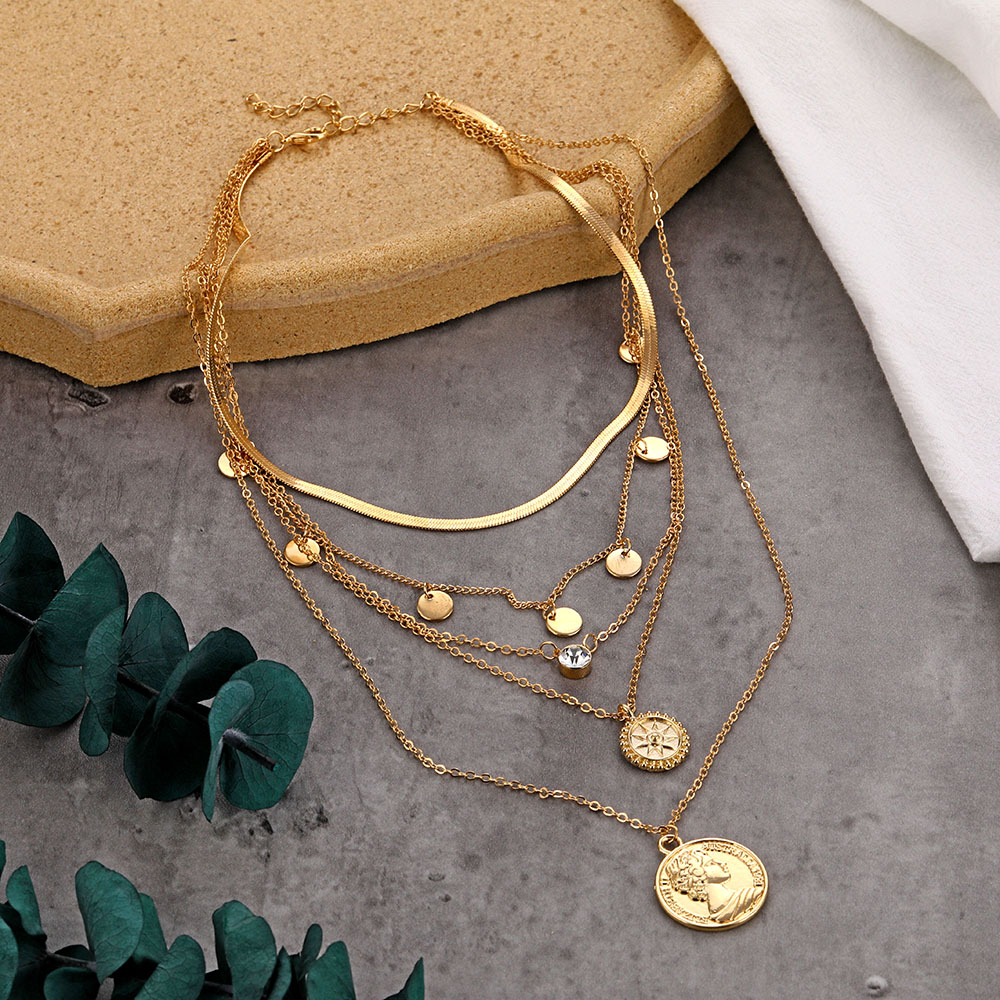 Fleepmart Vintage Multilayer Portrait Coin Pendant Necklace Bohemian Snake Chain Golden Head Coin Collar Necklace Fashion Trend Jewelry