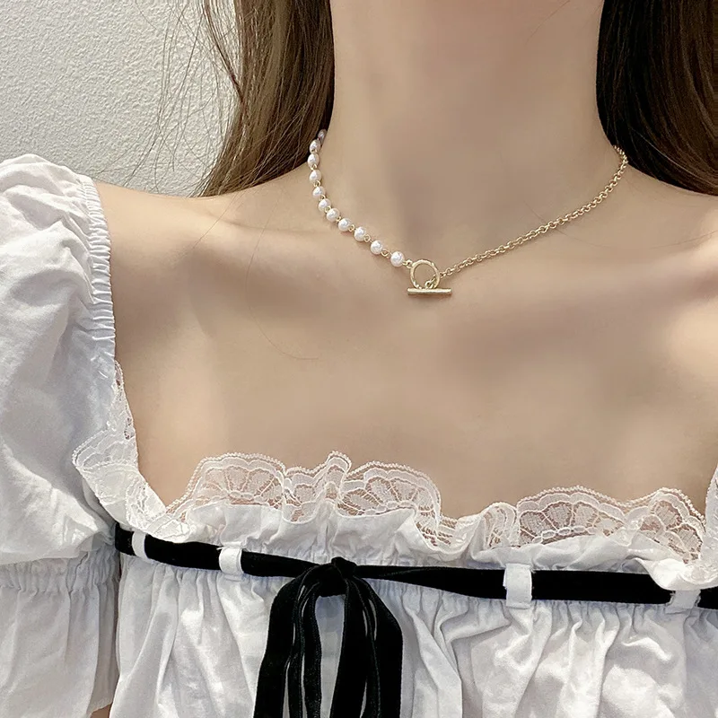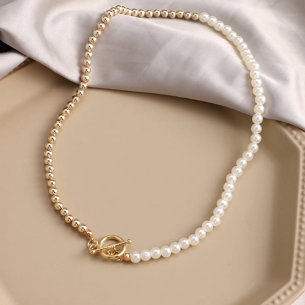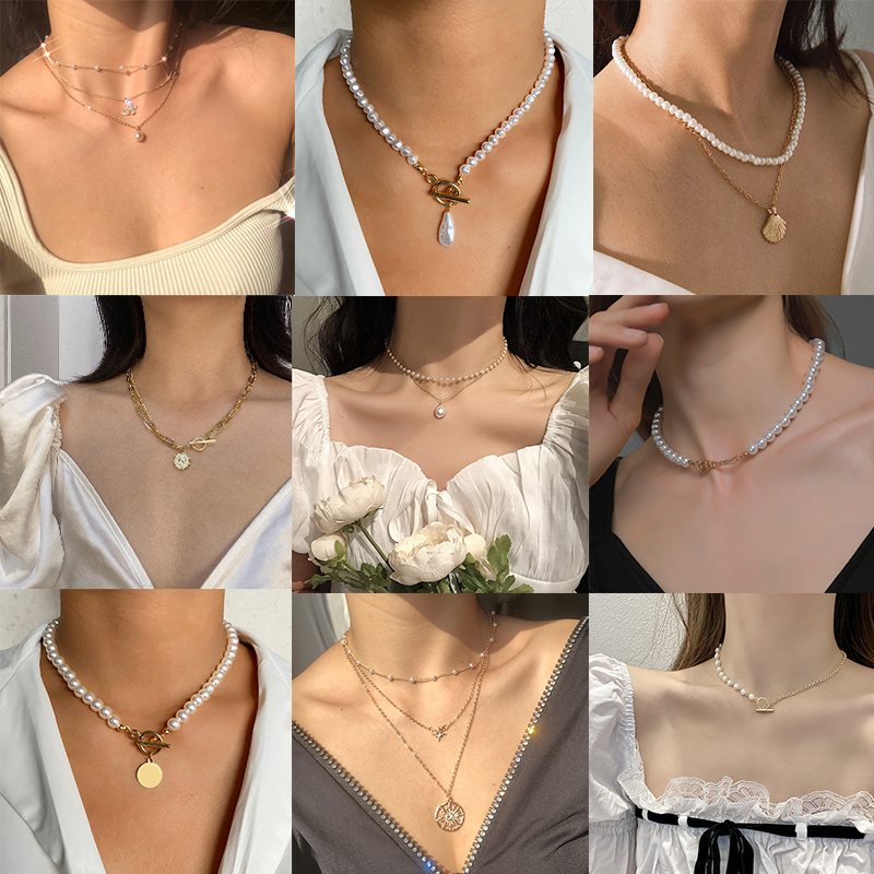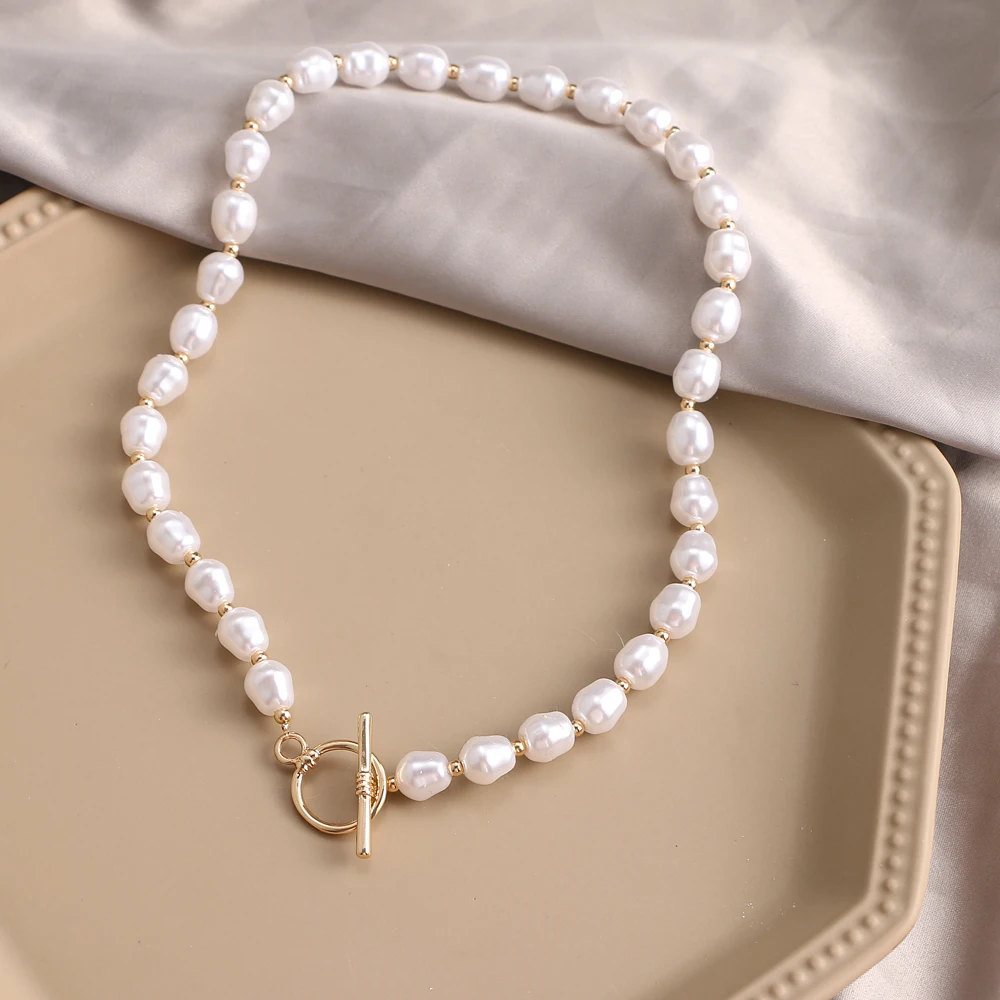 Fleepmart Vintage Pearl Choker Necklace For Women Fashion Summer White Imitation Pearl Necklaces 2021 Trend Elegant Wedding Jewelry