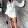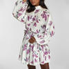 Fleepmart Vintage Printed Lace-Up Shirt Dress For Women Spring Summer Fashion Ruffled Pleated Long Sleeve High Street Women’s Mini Dresses