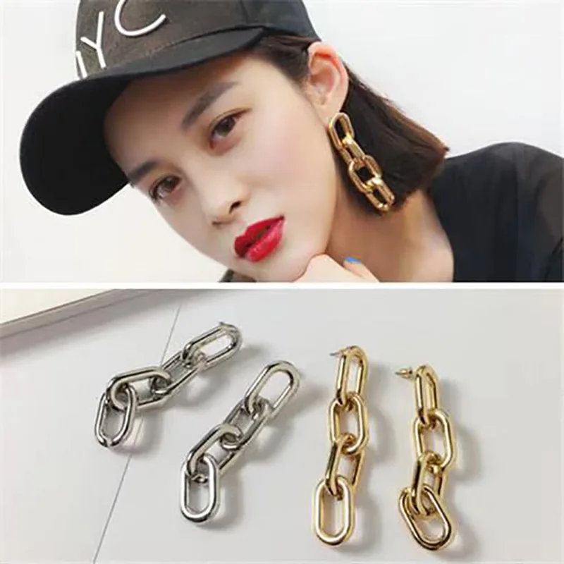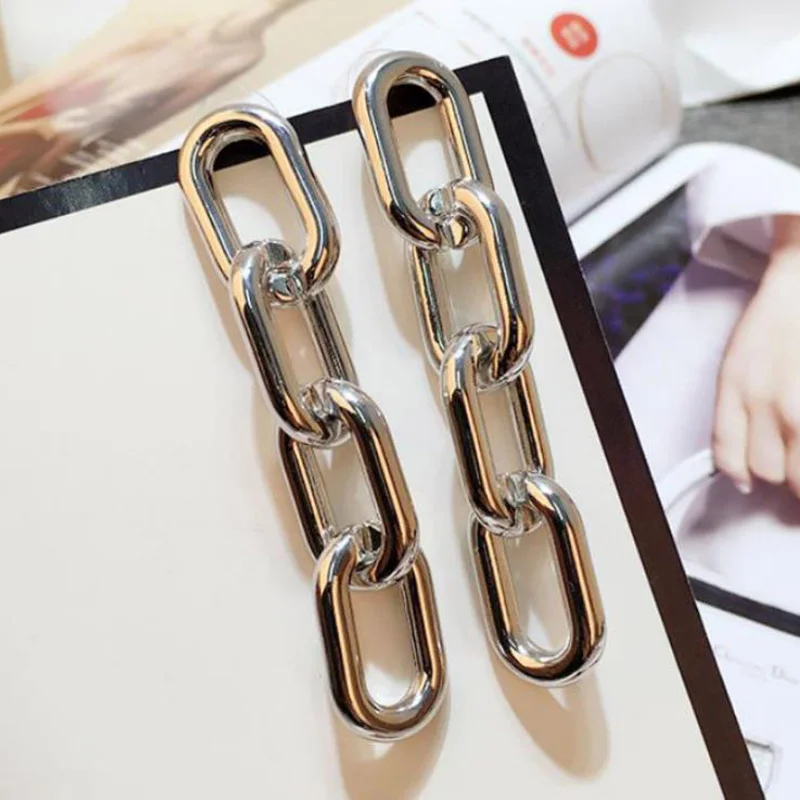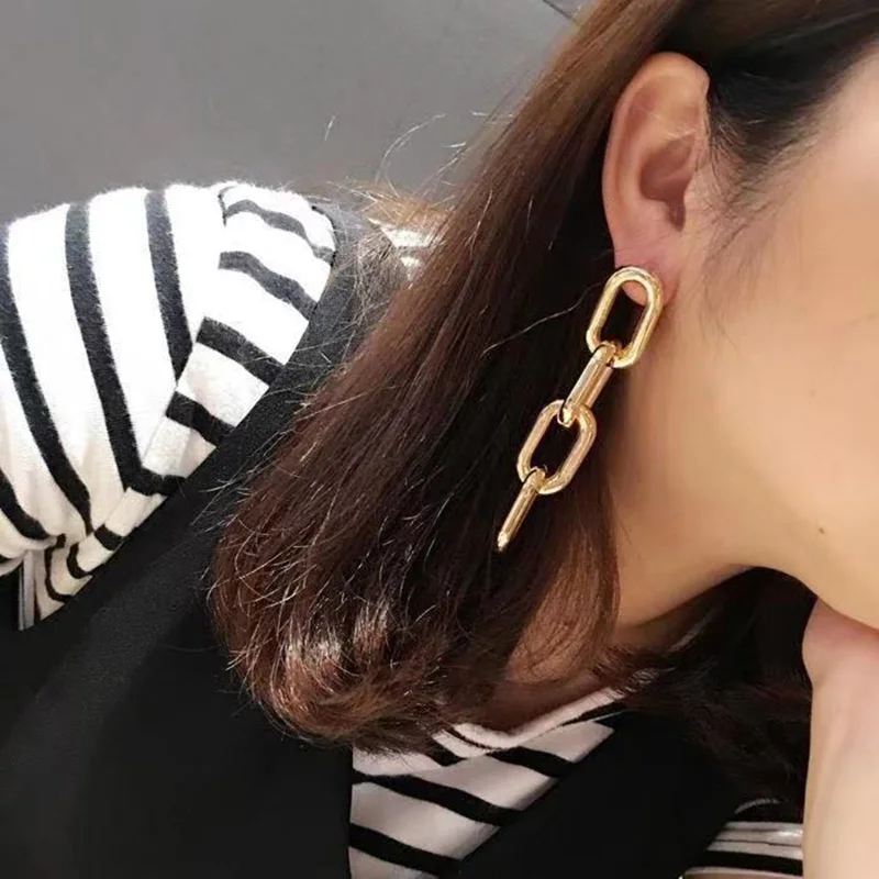 Fleepmart Vintage Punk Acrylic Thick Gold Color Chain Big Earrings for Women Party Wedding Drop Earrings Fashion Jewelry Statement Brincos