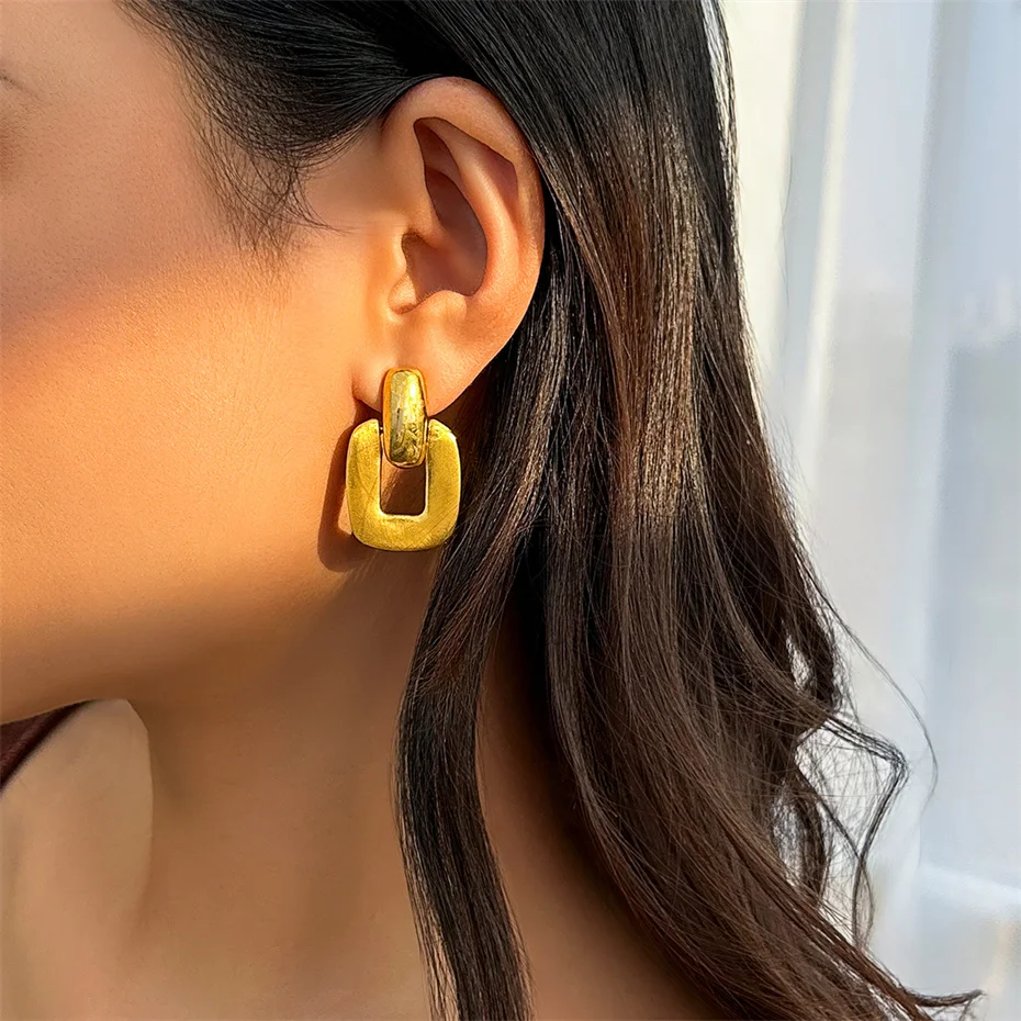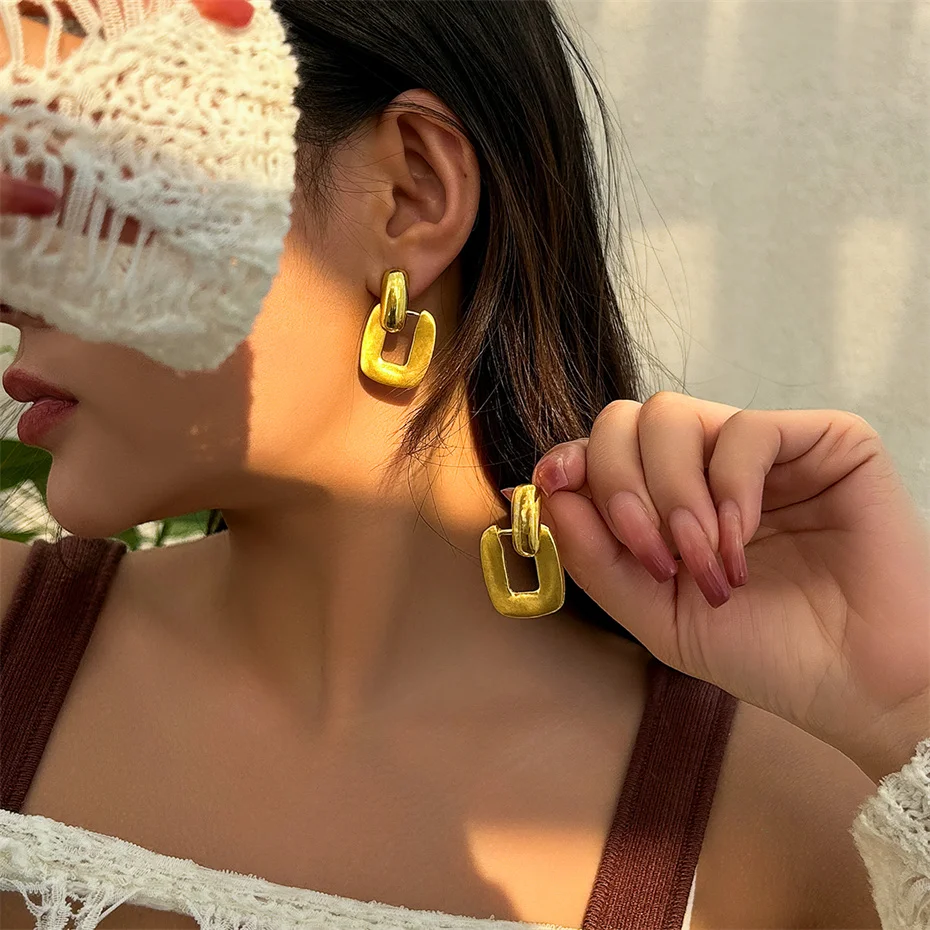 Fleepmart Vintage Punk Matte Square Drop Earrings 2024 Trend Women Goth Hanging Piercing Earrings Wed Party Jewelry Accessories