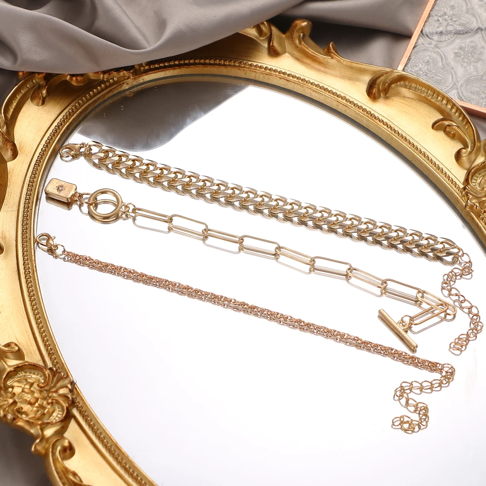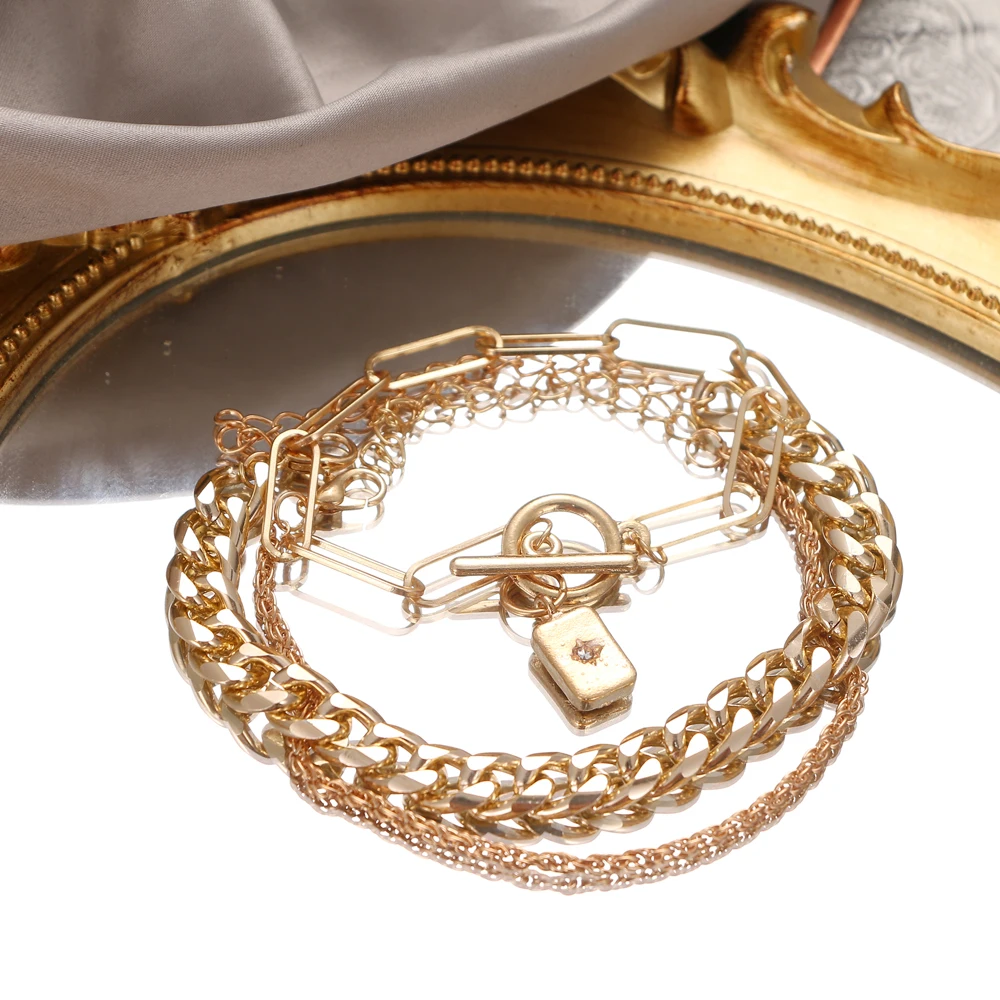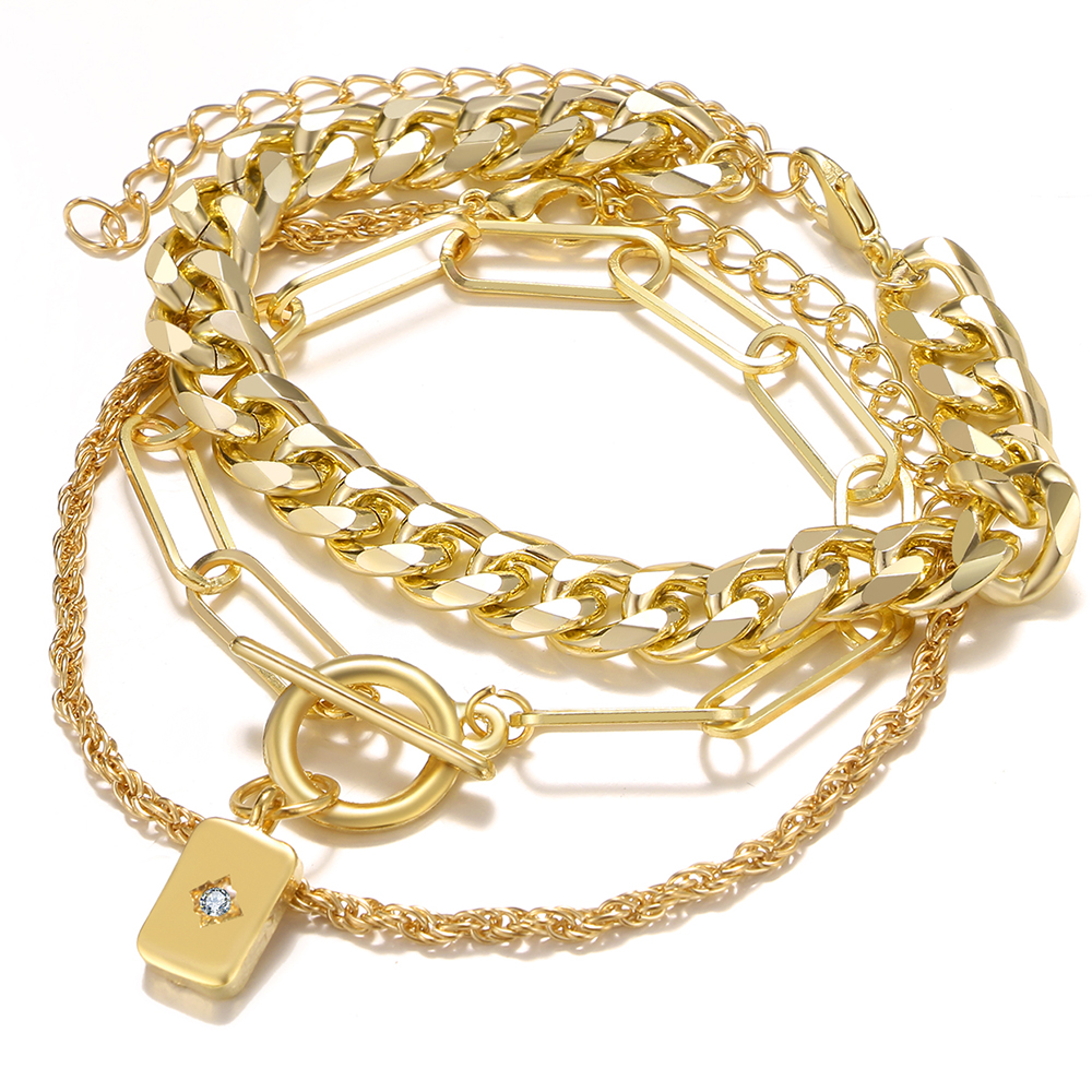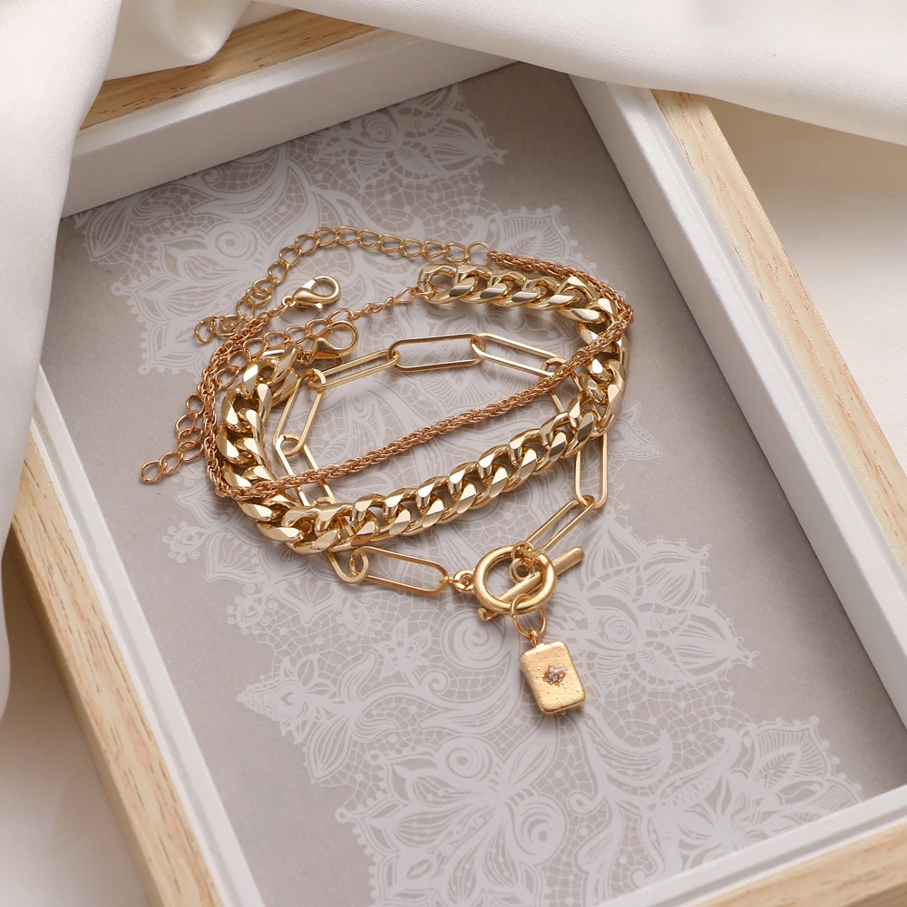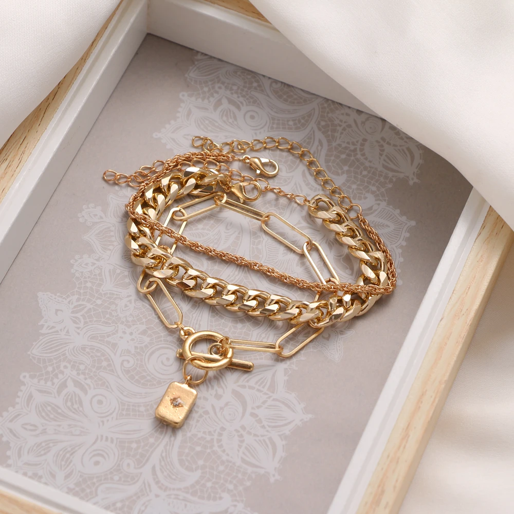 Fleepmart Vintage Punk Metal Thick Chain Women’s Bracelet Fashion Golden Twist Chain Pendant Charm Bracelet Set Jewelry Gift