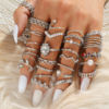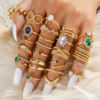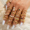 Fleepmart Vintage Purple Green Crystal Zircon Pearls Rings for Women Geometric Finger Rings Set Opening Ring Fashion Jewelry Gifts