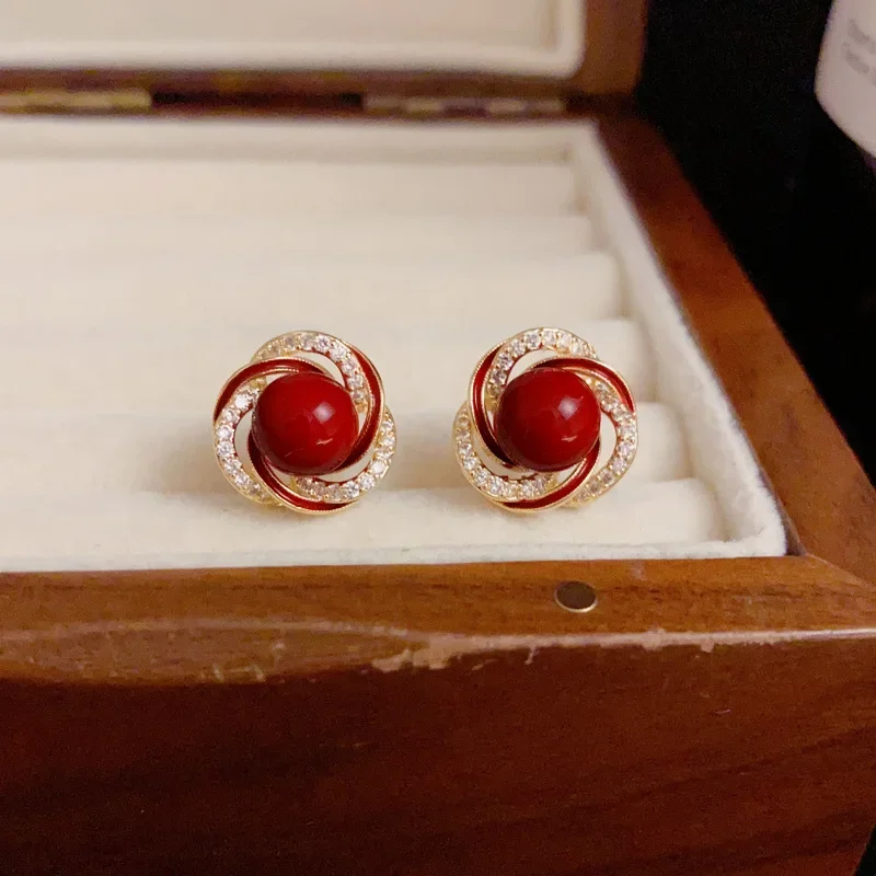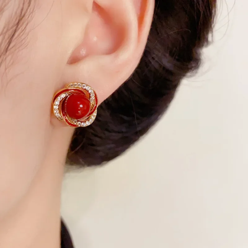 Fleepmart Vintage Rhinestone Stud Crystal Enamel Oil Geometry Earrings Women Exquisite Ear Studs Jewelry
