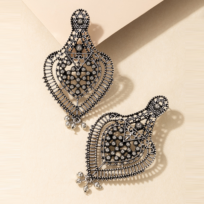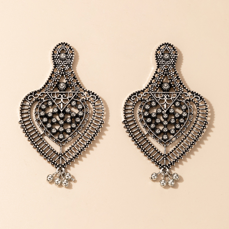 Fleepmart Vintage Silver Color Heart Drop Dangle Earrings for Women Tassel Hollow Geometry Alloy Metal Indian Gypsy Jewelry