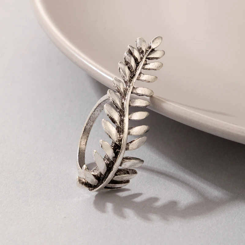 Fleepmart Vintage Silver Color Leaf Singer Ring for Women Men Charms Alloy Metal Geometry Party Joint Ring Jewelry кольца