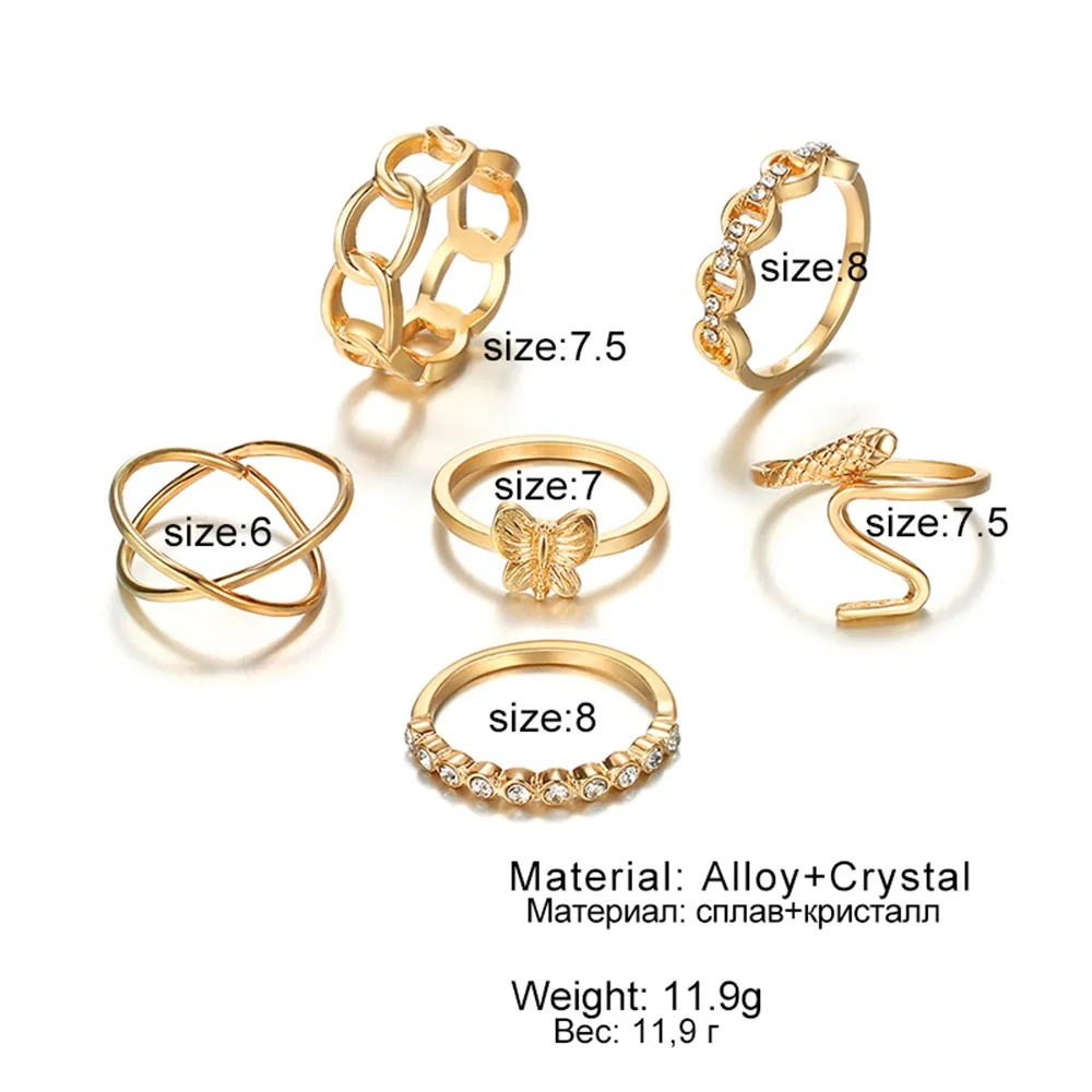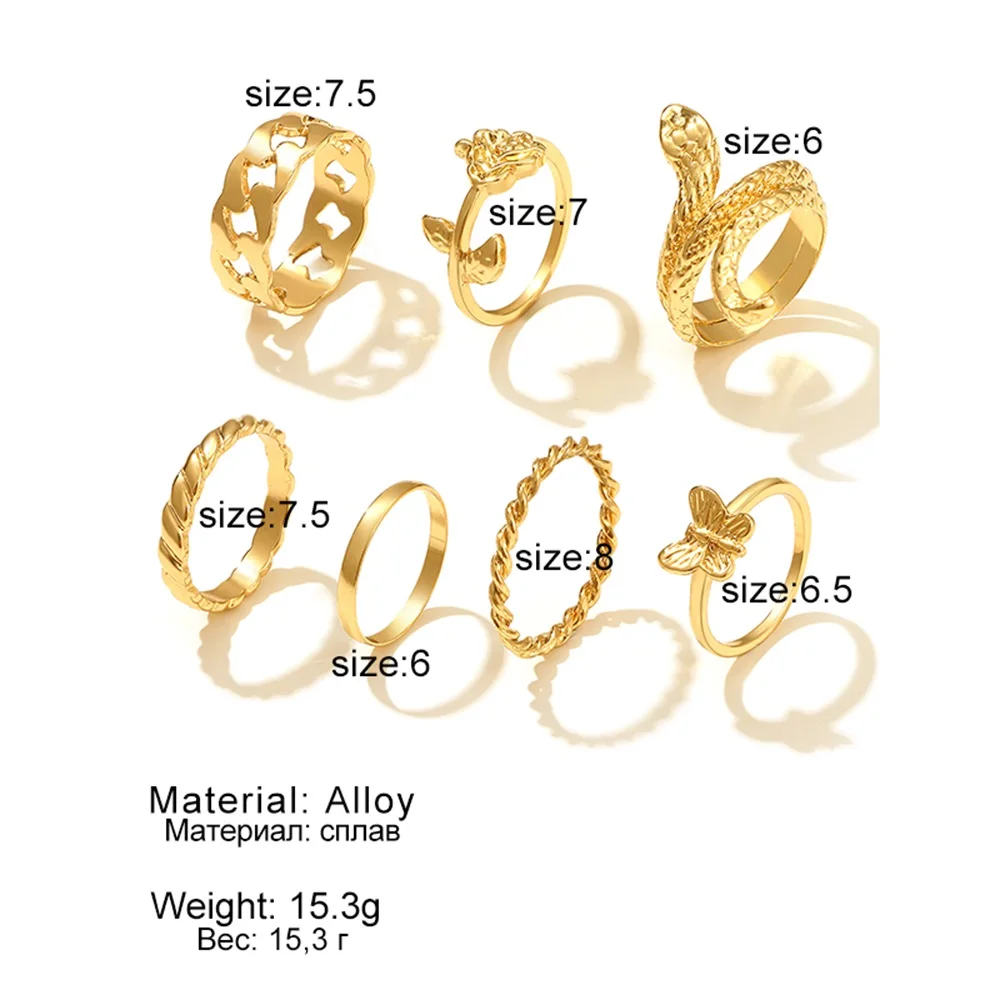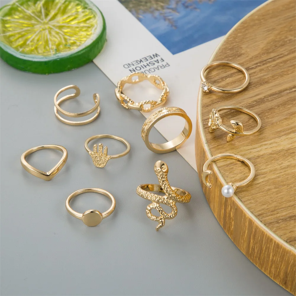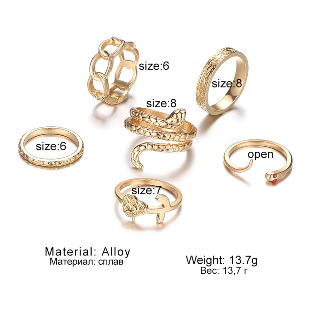 Fleepmart Vintage Snake Animal Rings for Women Gothic Gold Color Geometry Metal Alloy Finger Ring Sets Jewelry