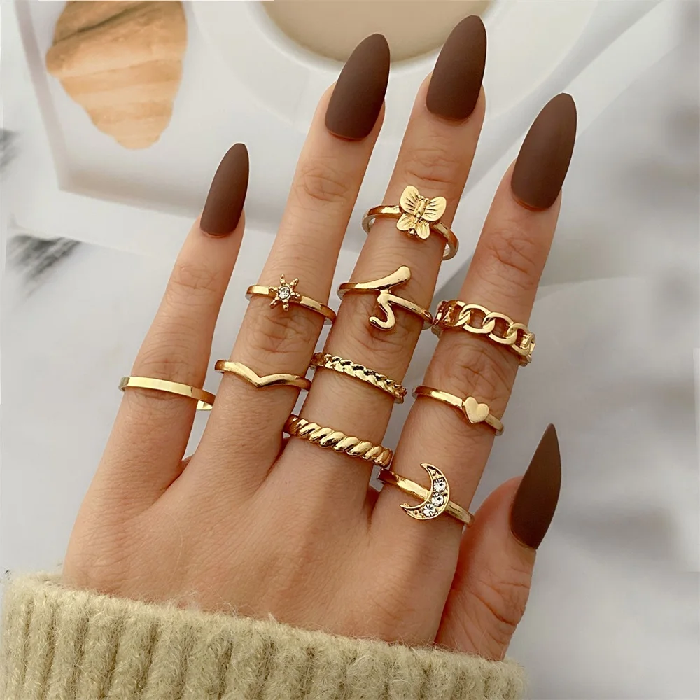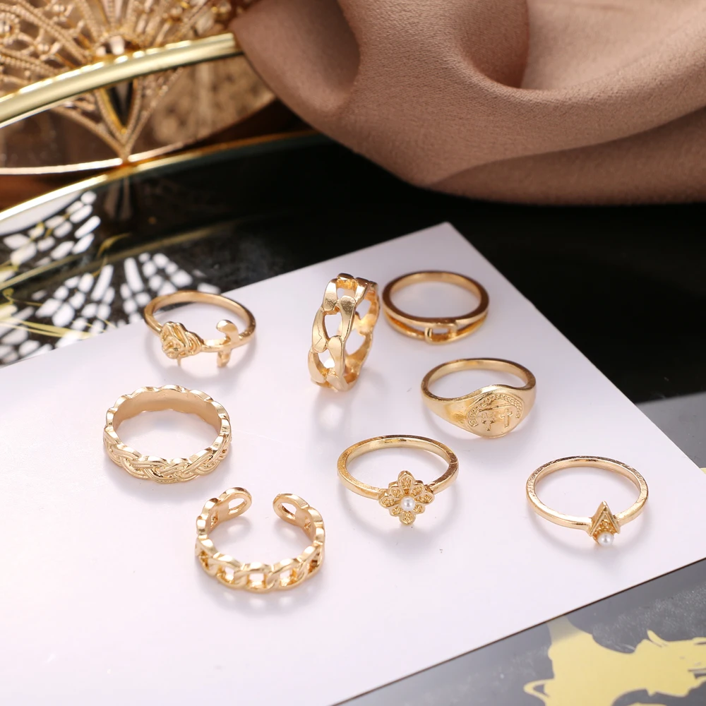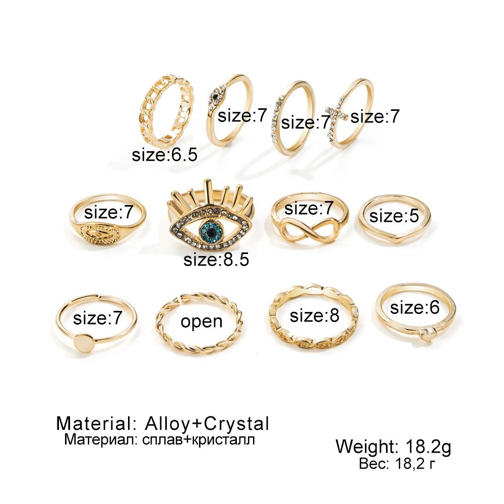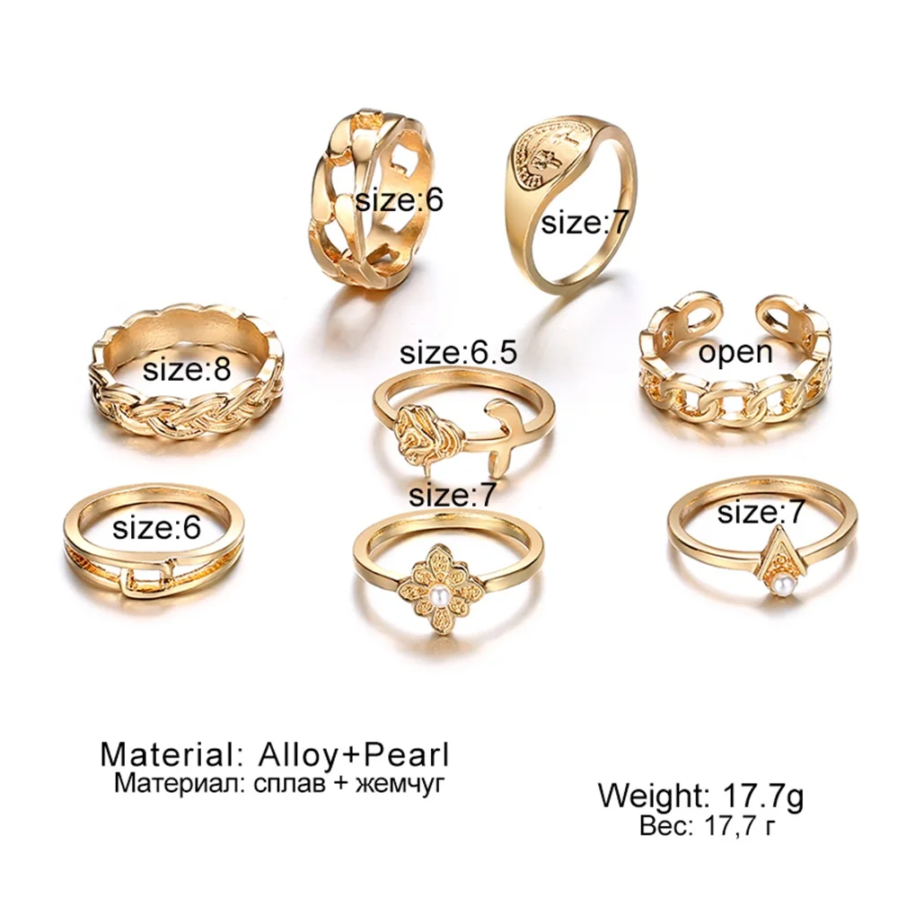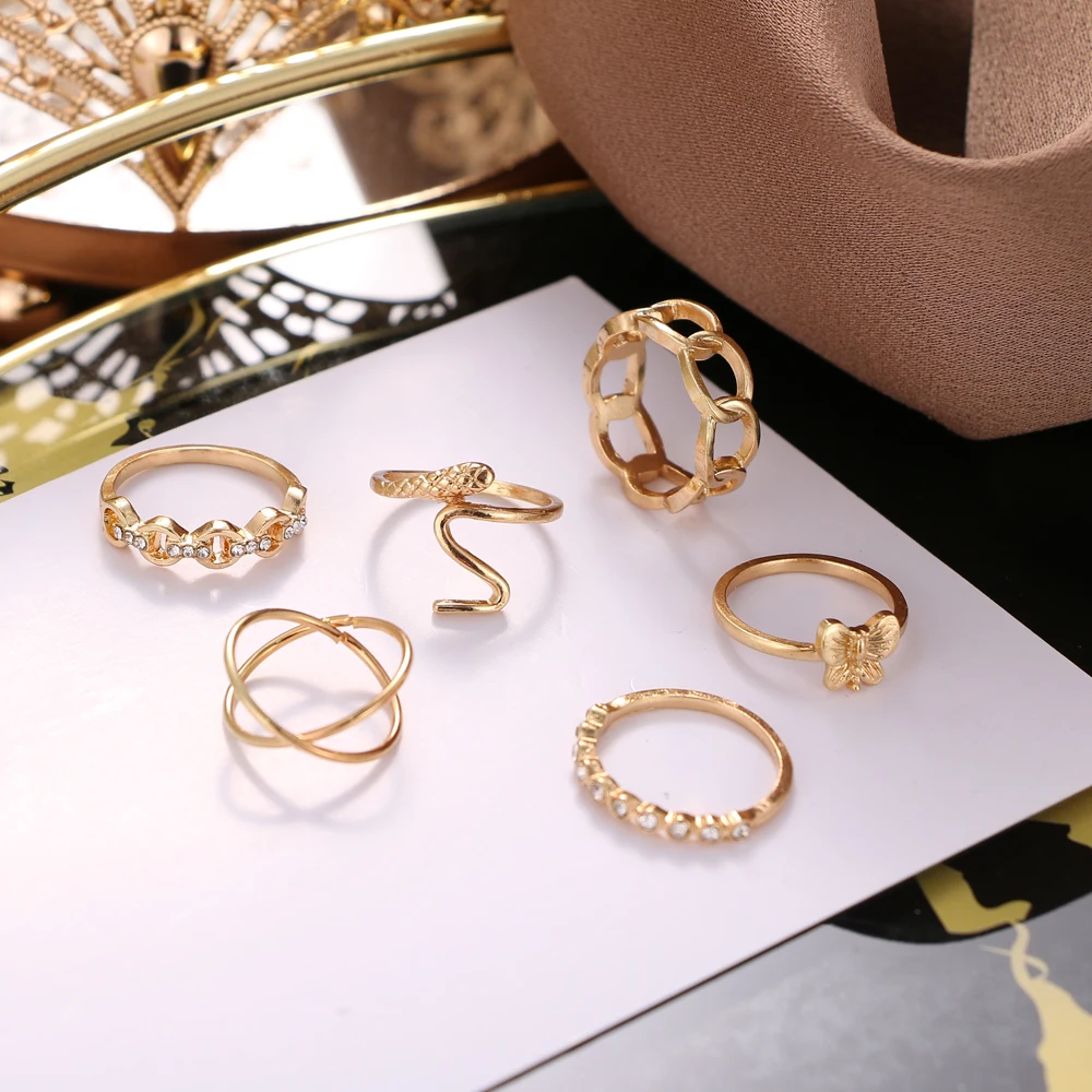 Fleepmart Vintage Snake Animal Rings for Women Gothic Gold Color Geometry Metal Alloy Finger Ring Sets Jewelry