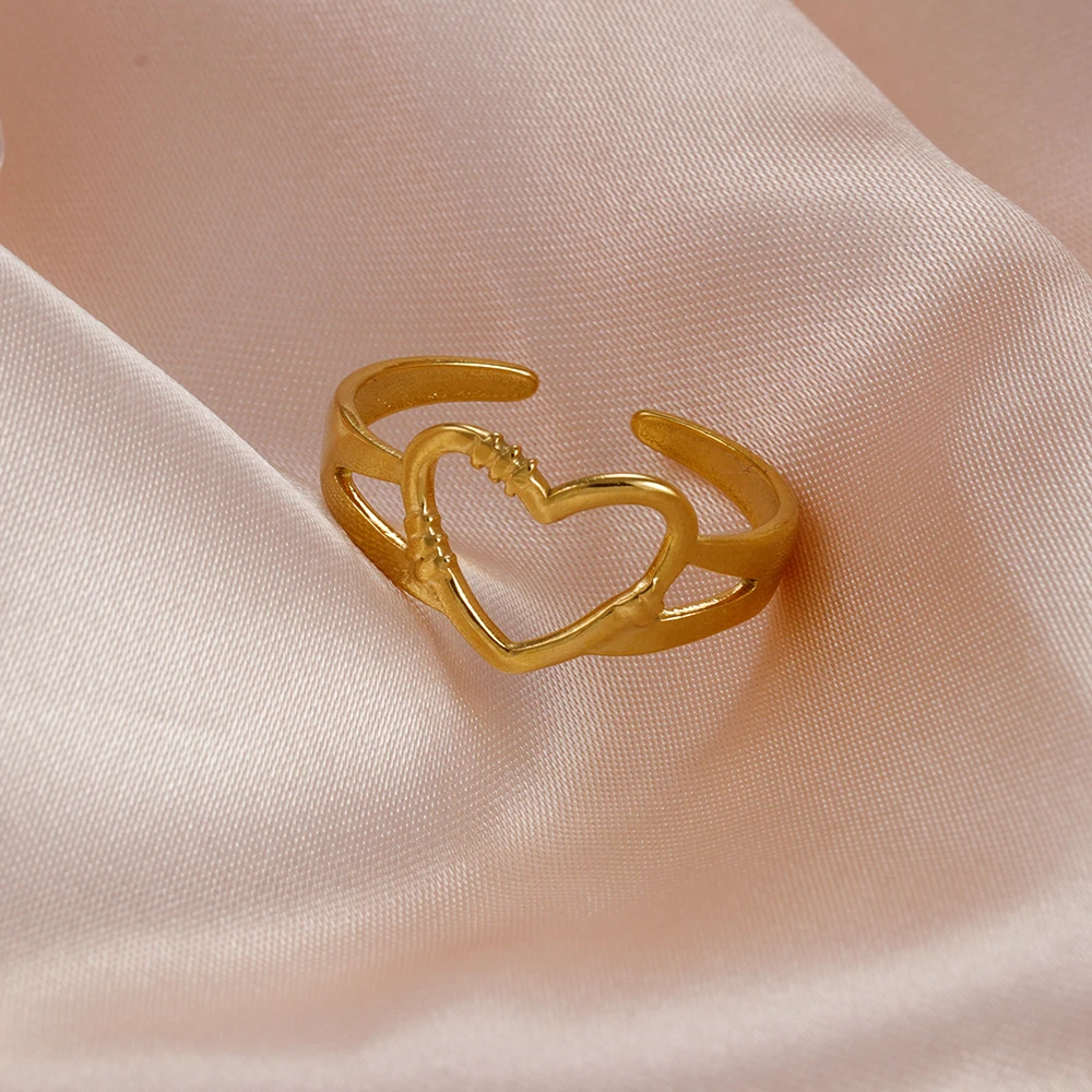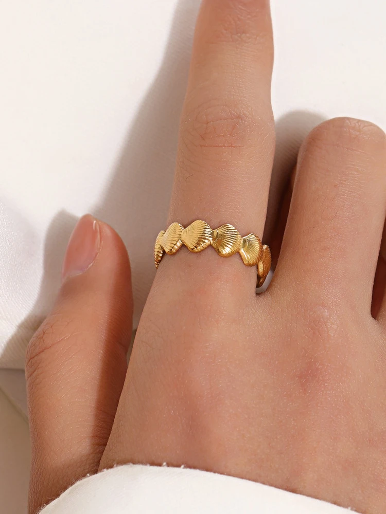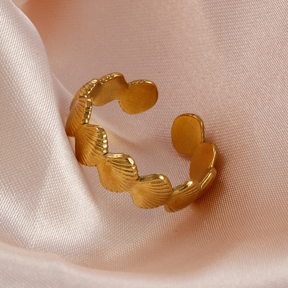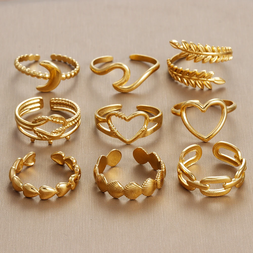 Fleepmart Vintage Stainless Steel Rings For Women Gold Color Leaf Moon Heart Shell Geometric Rings Retro Fashion Jewelry Gift