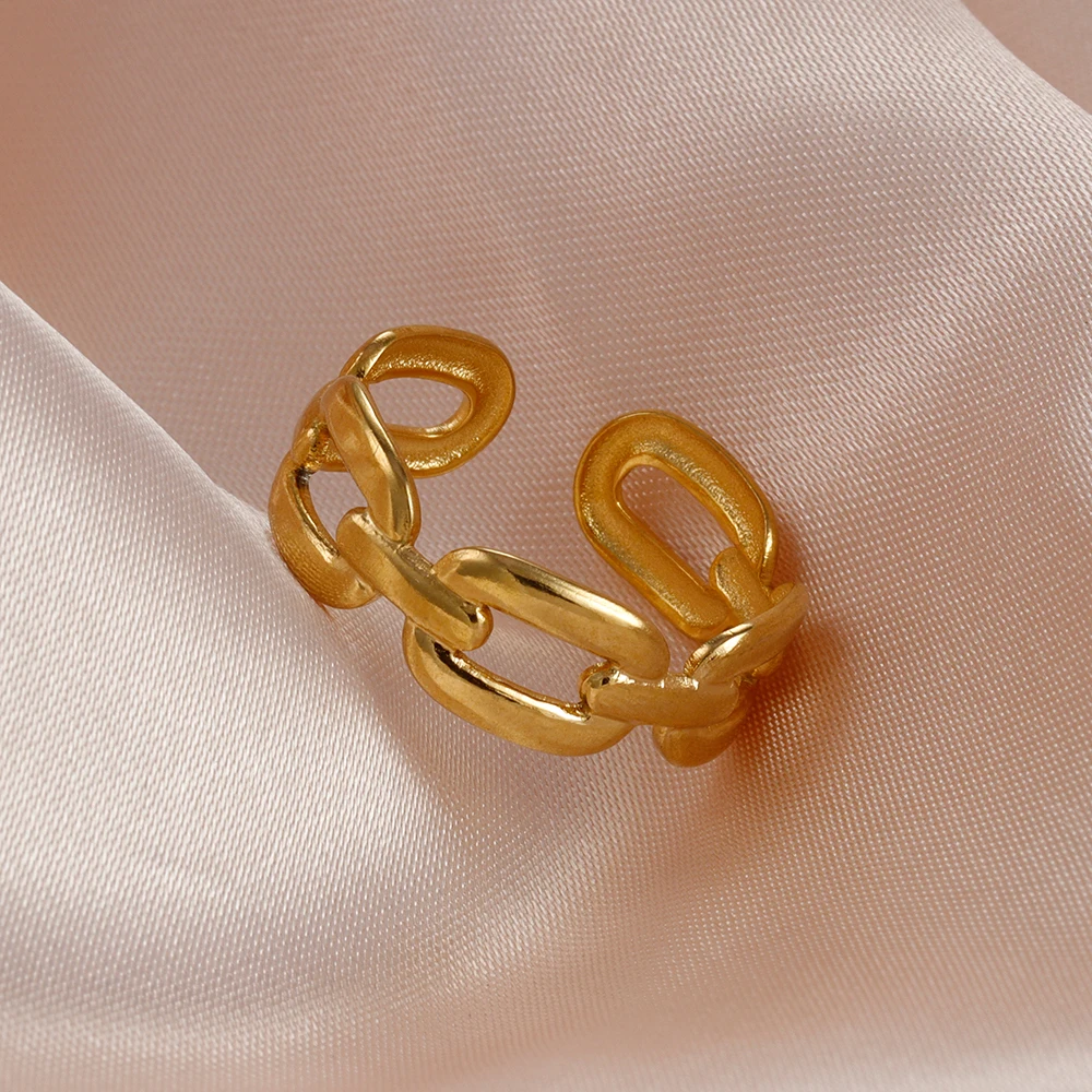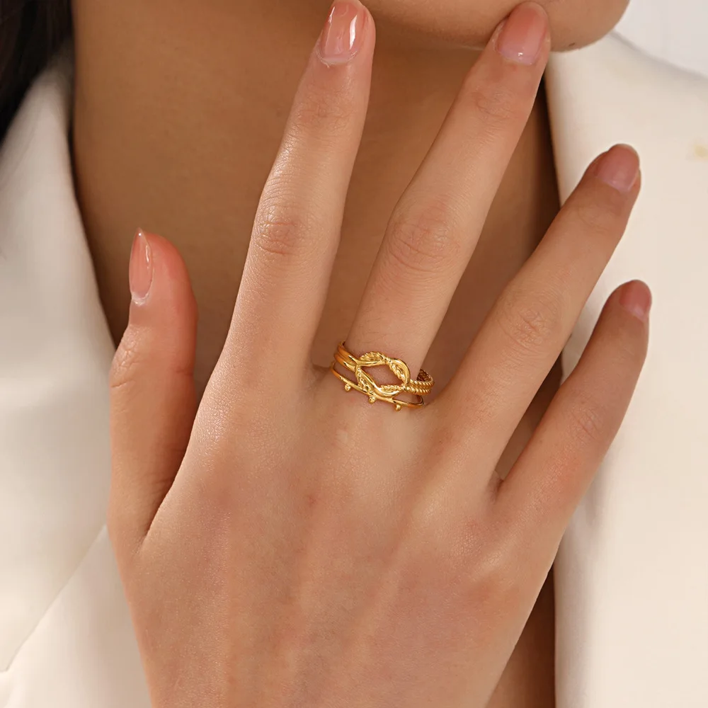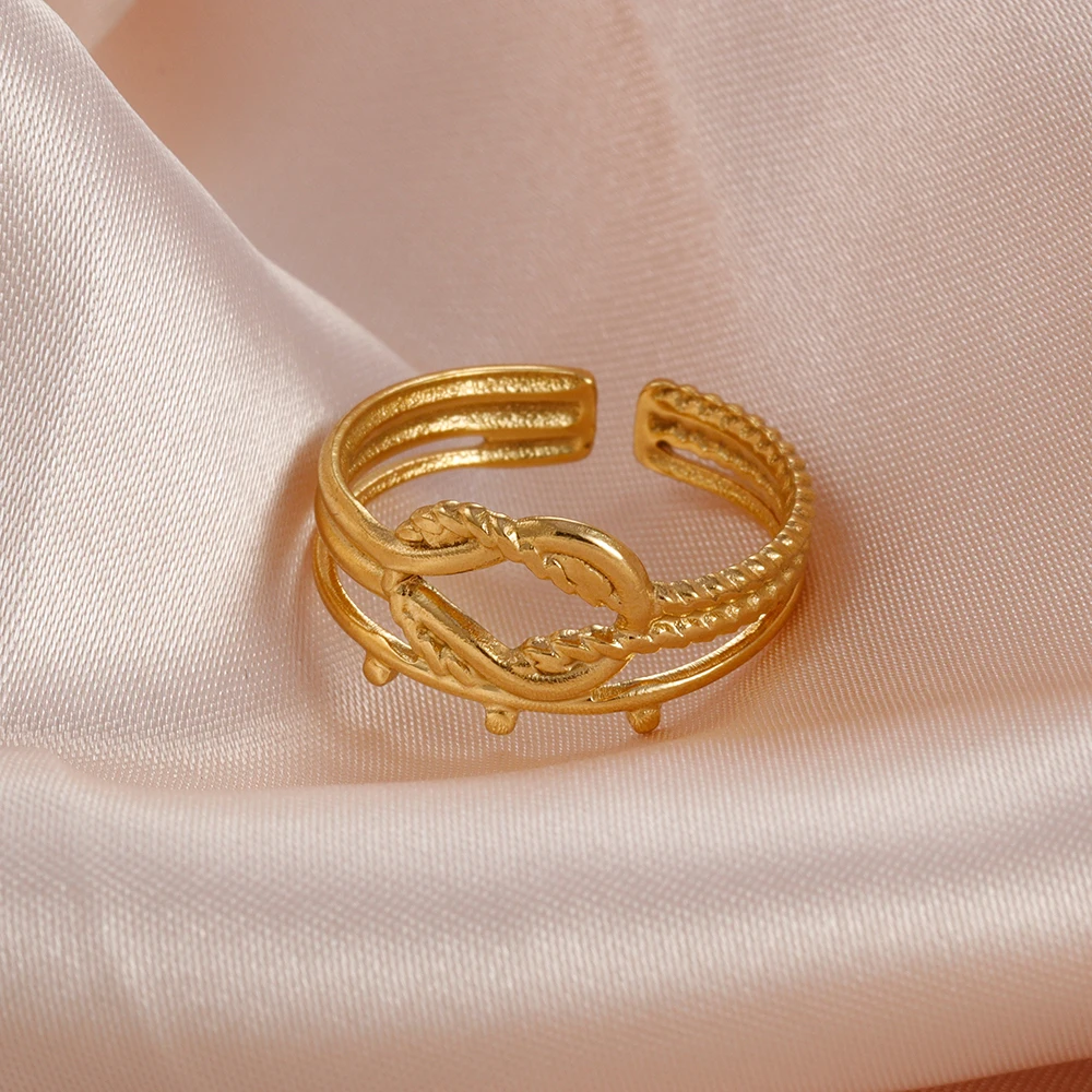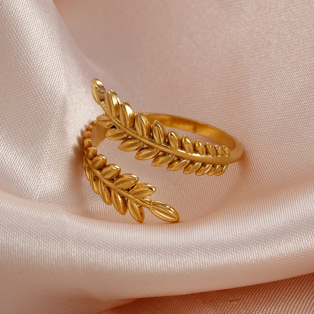 Fleepmart Vintage Stainless Steel Rings For Women Gold Color Leaf Moon Heart Shell Geometric Rings Retro Fashion Jewelry Gift