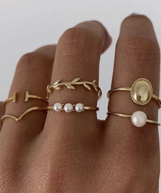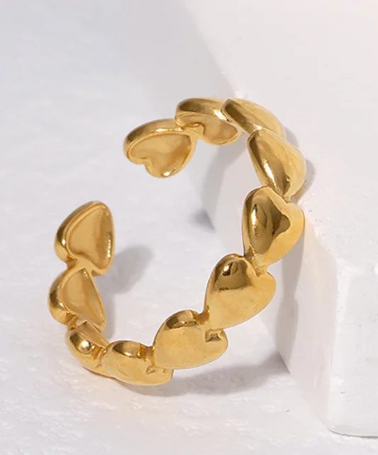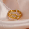 Fleepmart Vintage Stainless Steel Rings For Women Gold Color Leaf Moon Heart Shell Geometric Rings Retro Fashion Jewelry Gift