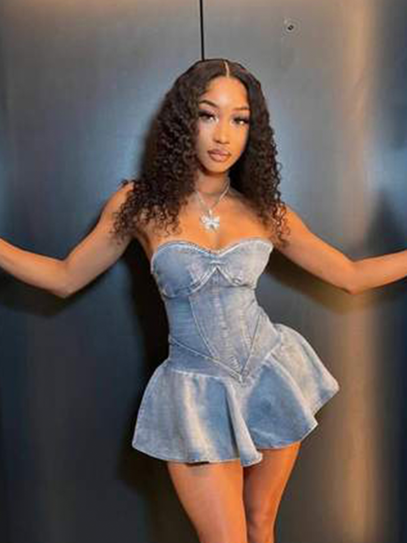 Fleepmart Vintage Strapless Denim Y2k Aesthetic Stretchy A-line Mini Fashion Korean Stretchy Ruffle Dress Women