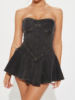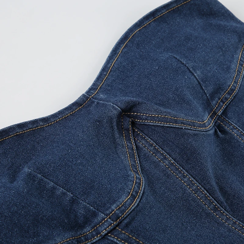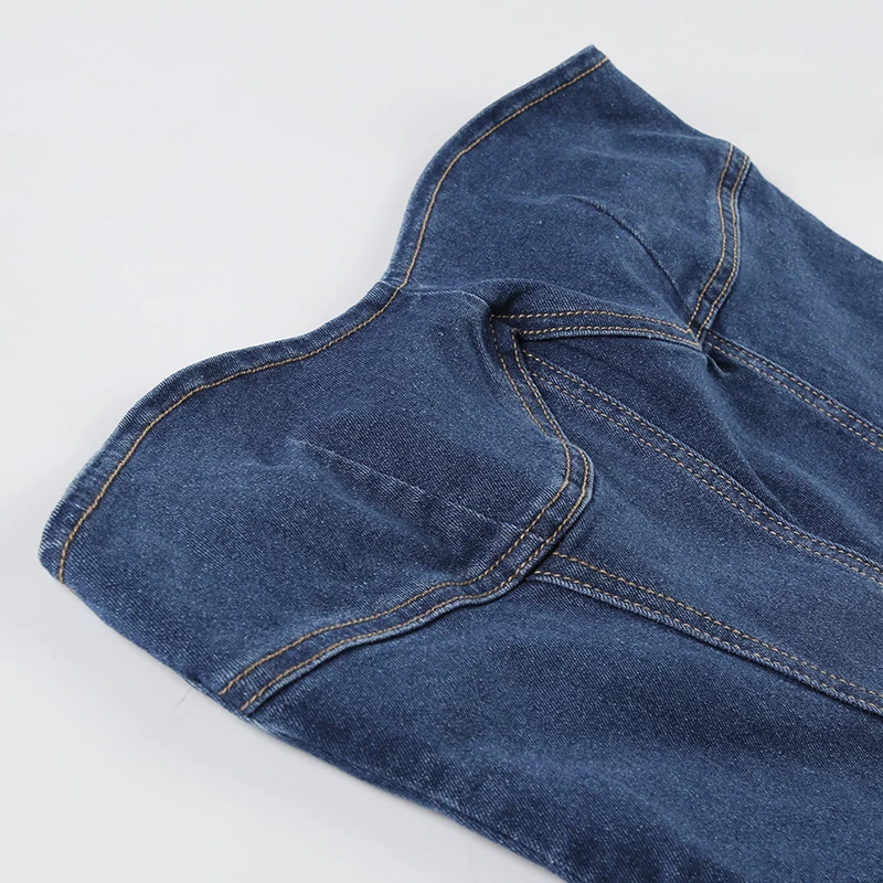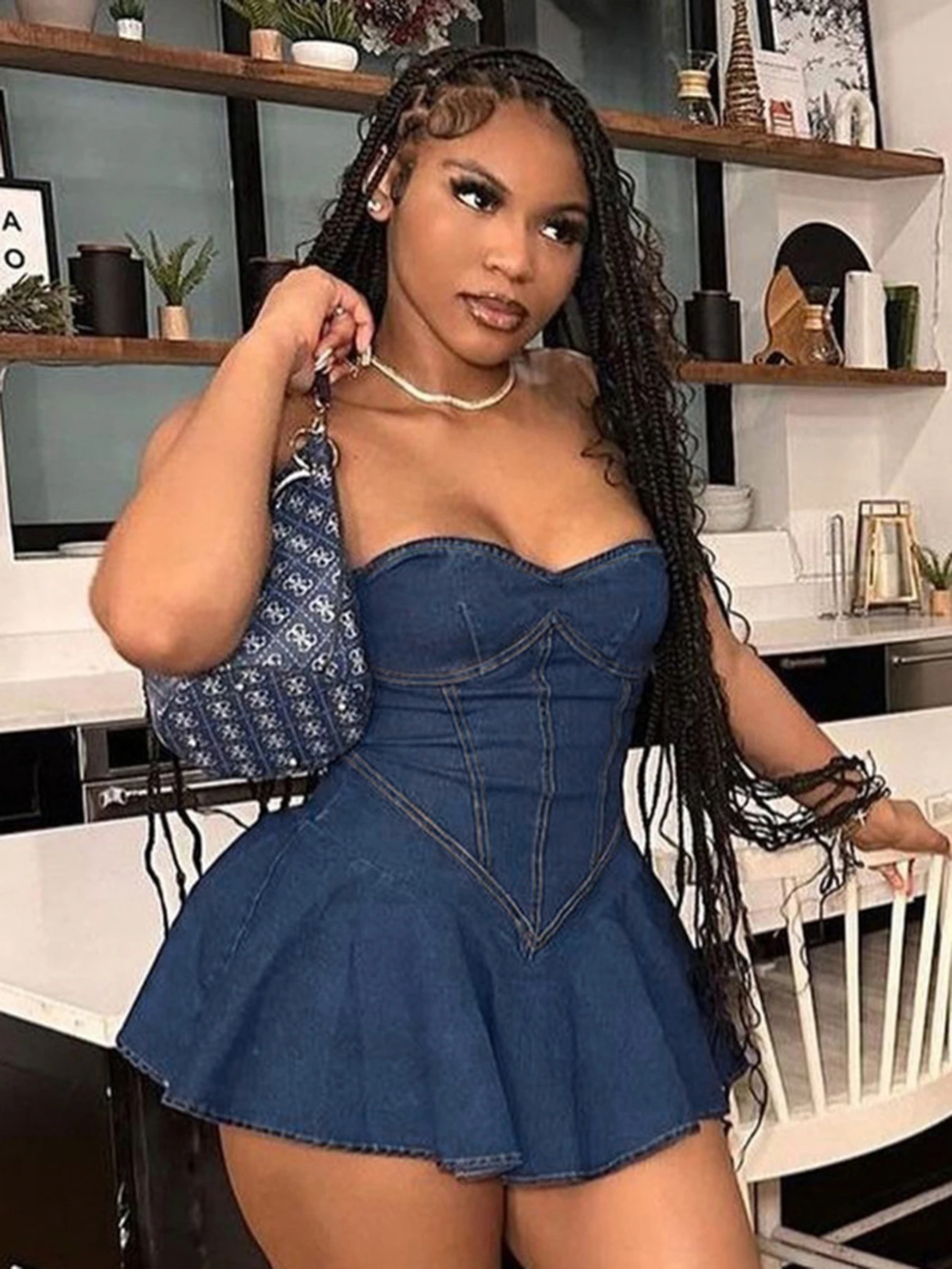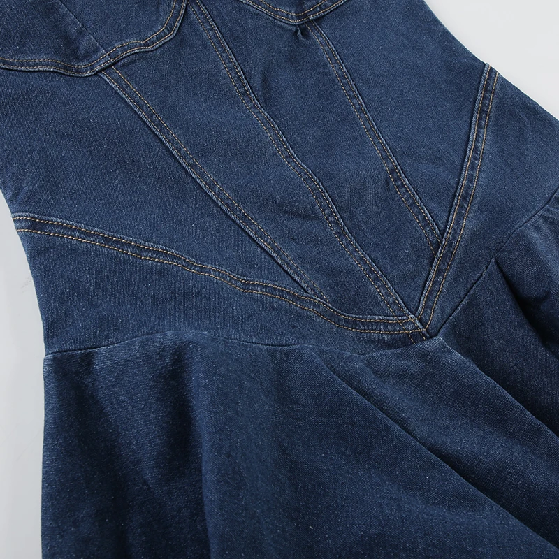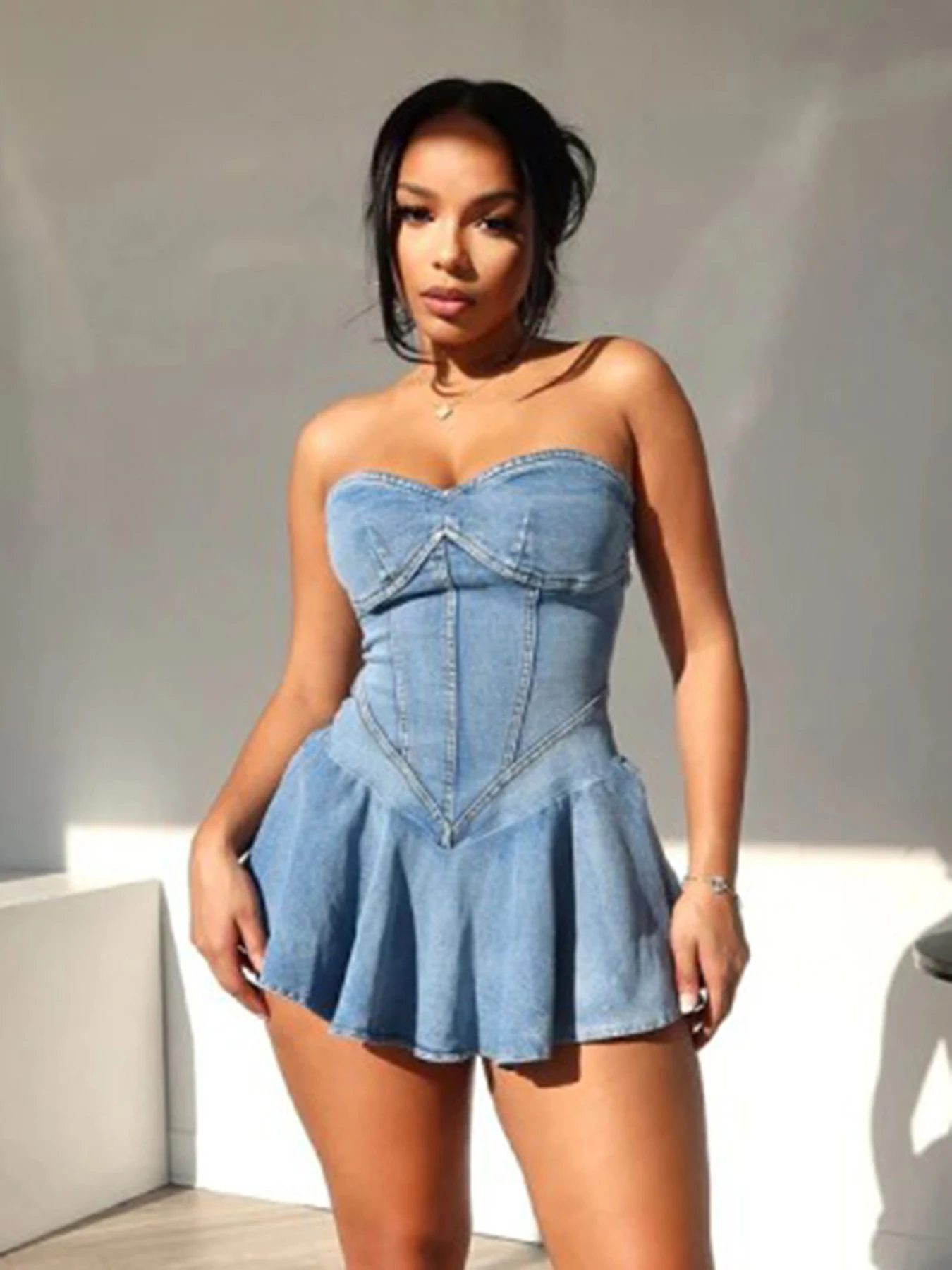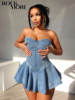 Fleepmart Vintage Strapless Denim Y2k Aesthetic Stretchy A-line Mini Fashion Korean Stretchy Ruffle Dress Women