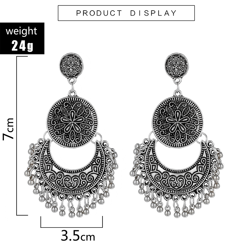 Fleepmart Vintage Tassel Dangle Earrings Retro Carving Flowets Gold Silver Color Alloy Metal Jewery for Women сережки