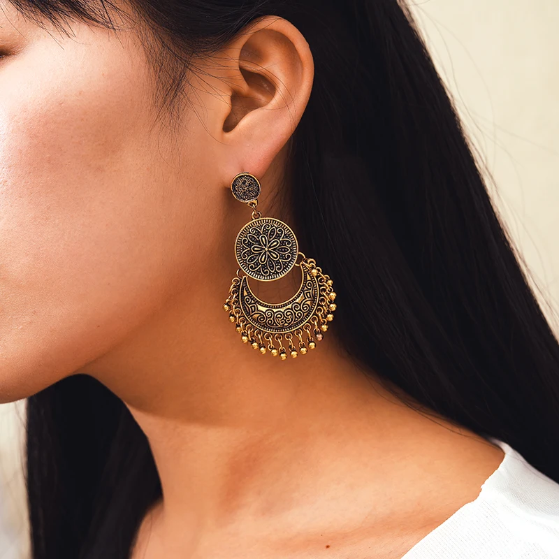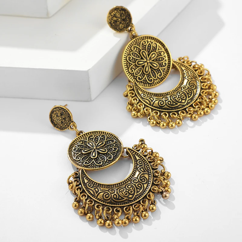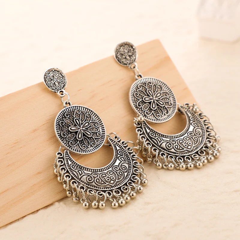 Fleepmart Vintage Tassel Dangle Earrings Retro Carving Flowets Gold Silver Color Alloy Metal Jewery for Women сережки