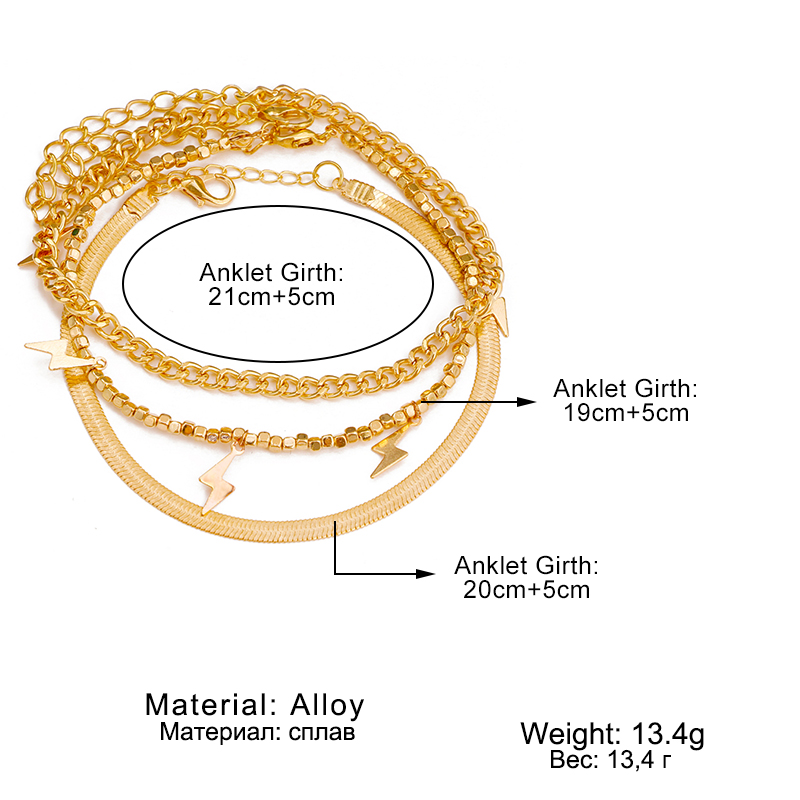 Fleepmart Vintage Women’s Chain Anklet Summer Bohemian Lightning Metal Snake Chain Leg Anklet Beach Jewelry Gift