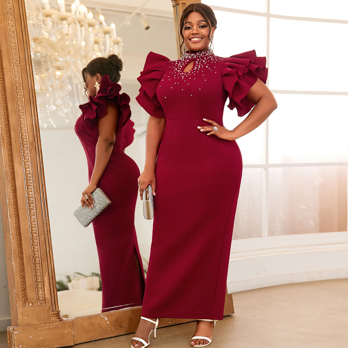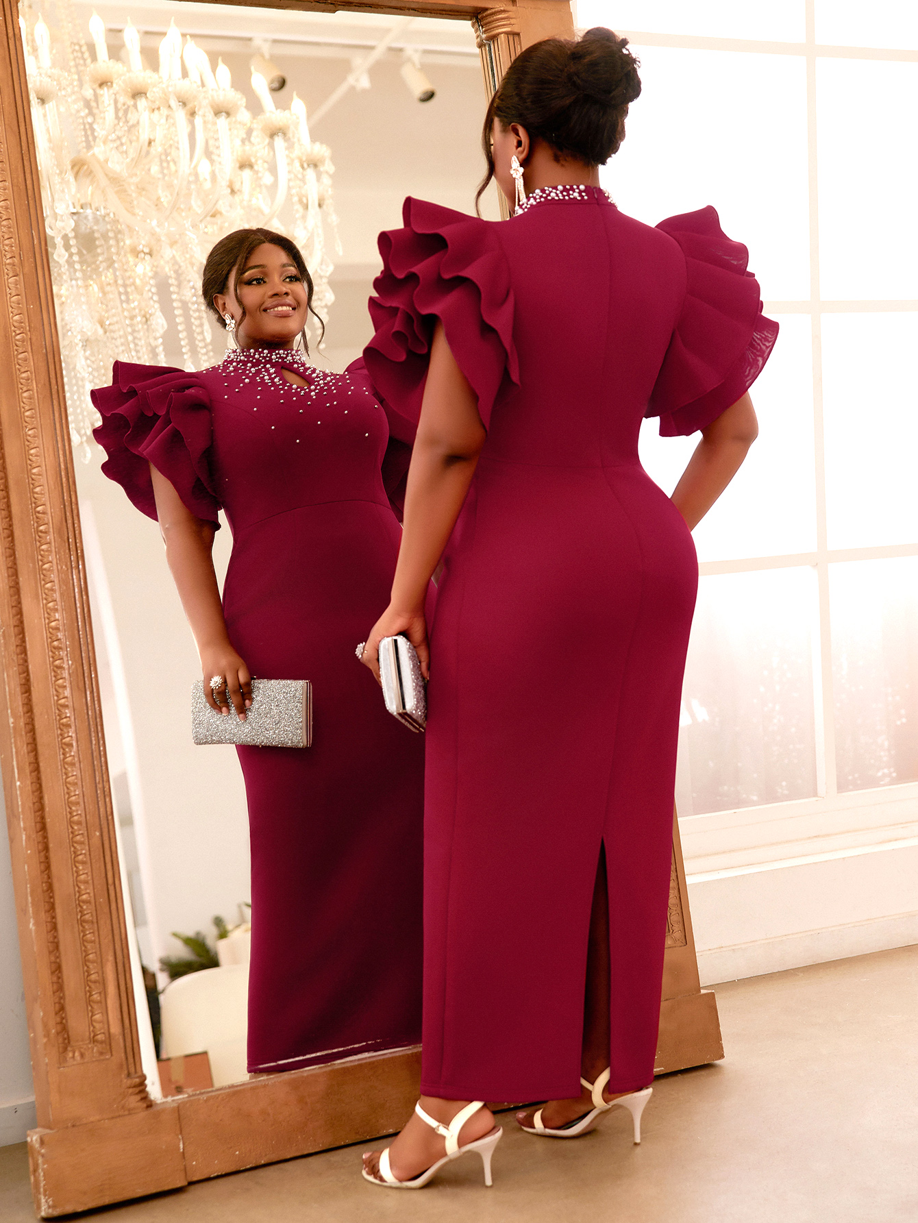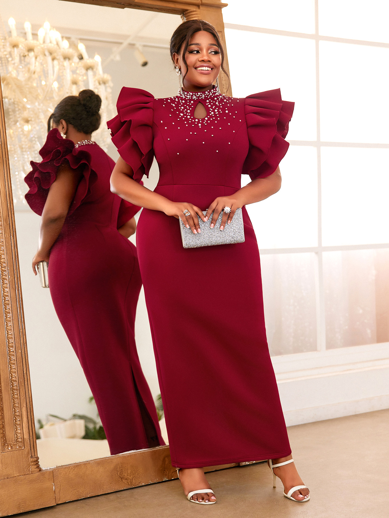 Fleepmart Wedding Guest Dresses for Women Party Mock Neck Beads Ruffle Short Sleeve Birthday Elegant Summer Homecoming Prom Event Occasion