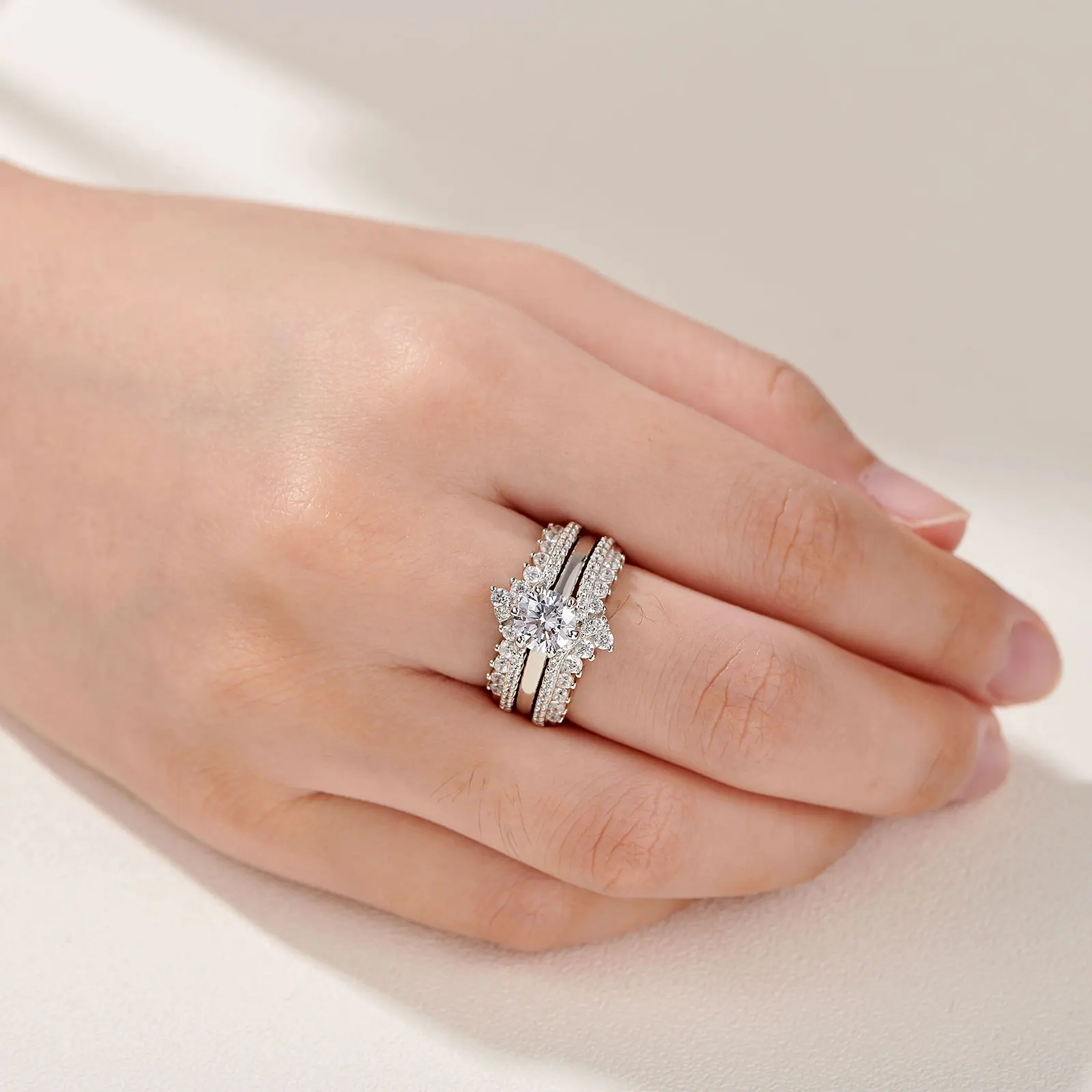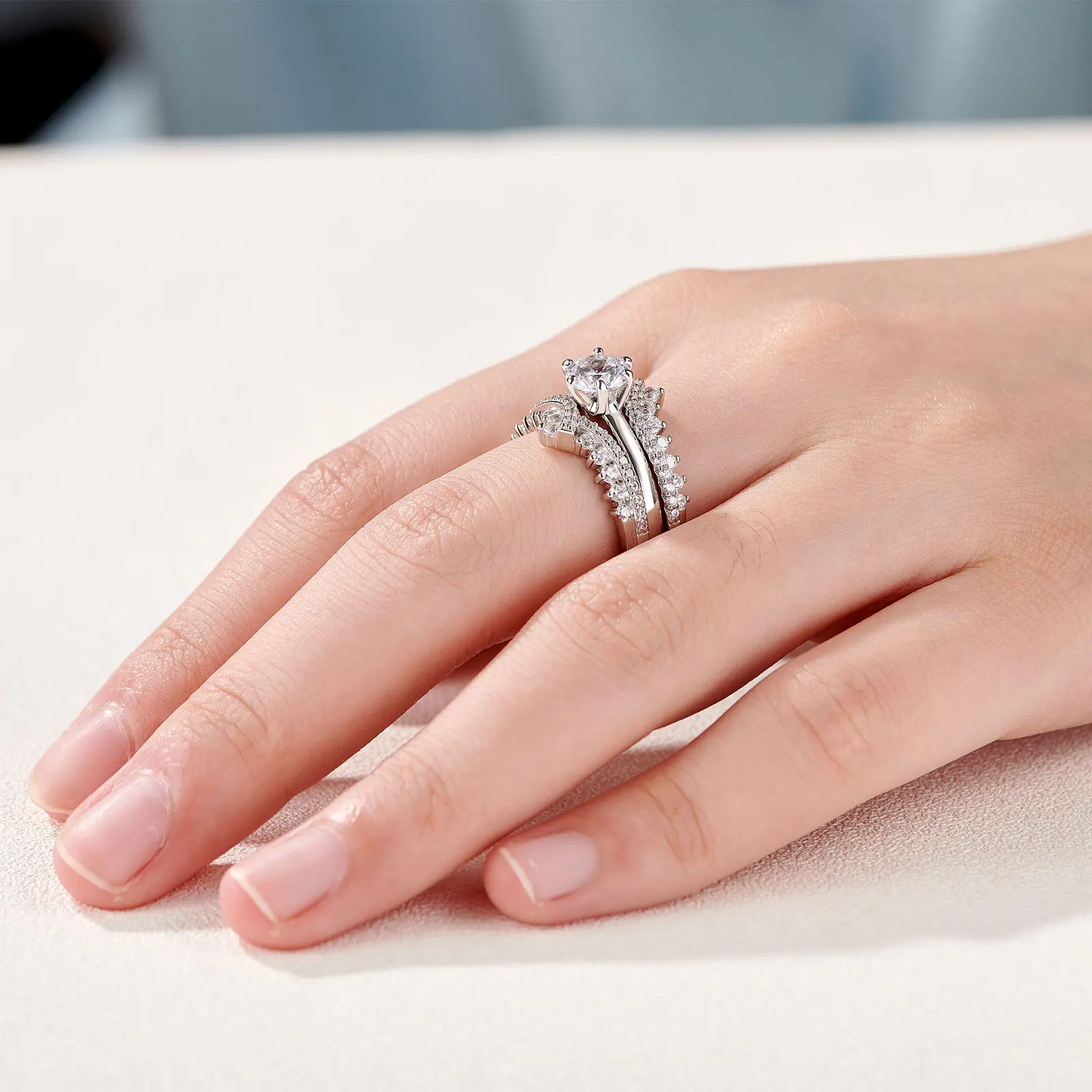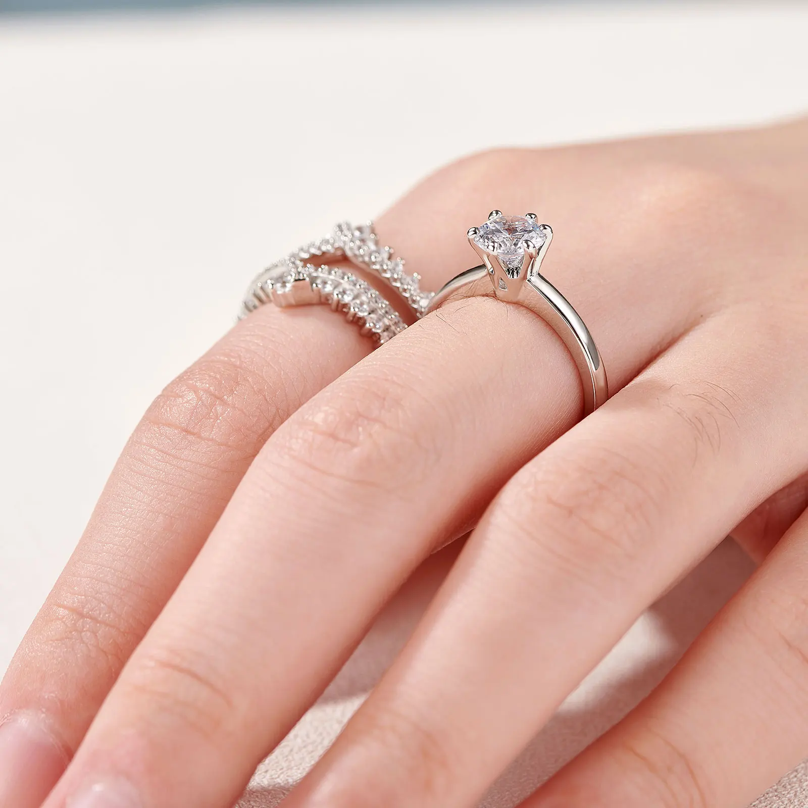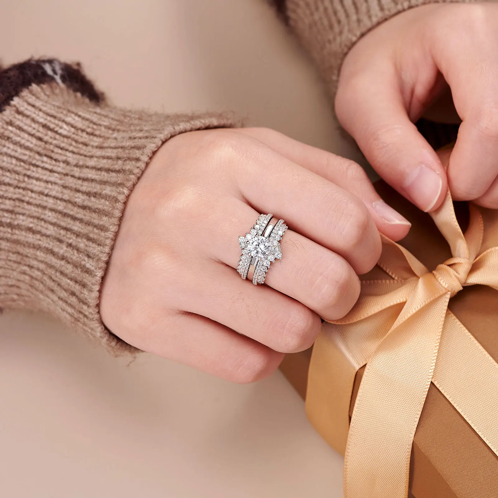 Fleepmart Wedding Rings for Women Engagement Ring Enhancer Band Bridal Set 925 Silver 1.8Ct Cz Fine Jewelry